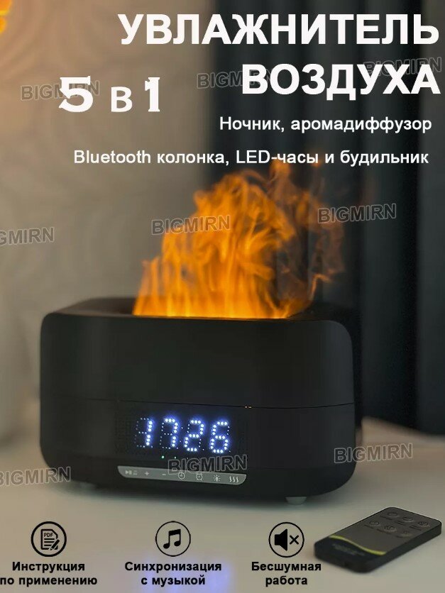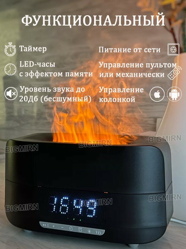 Увлажнитель воздуха и аромадиффузор с подсветкой для дома, ночник с эффектом пламяни