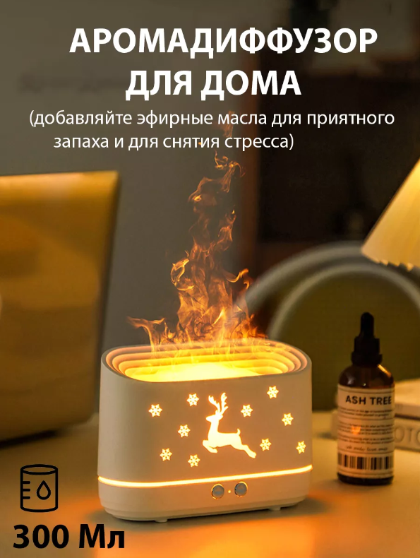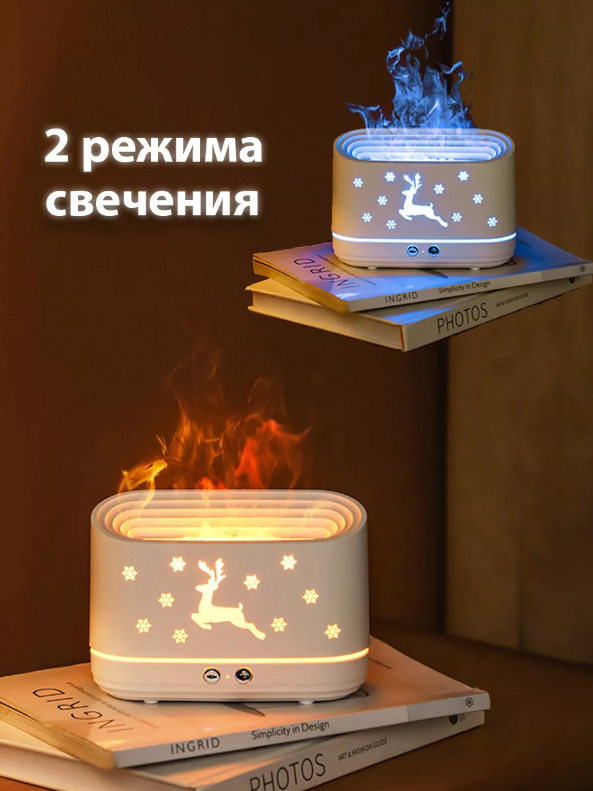 Увлажнитель воздуха и аромадиффузор с подсветкой для дома, ночник с эффектом пламяни