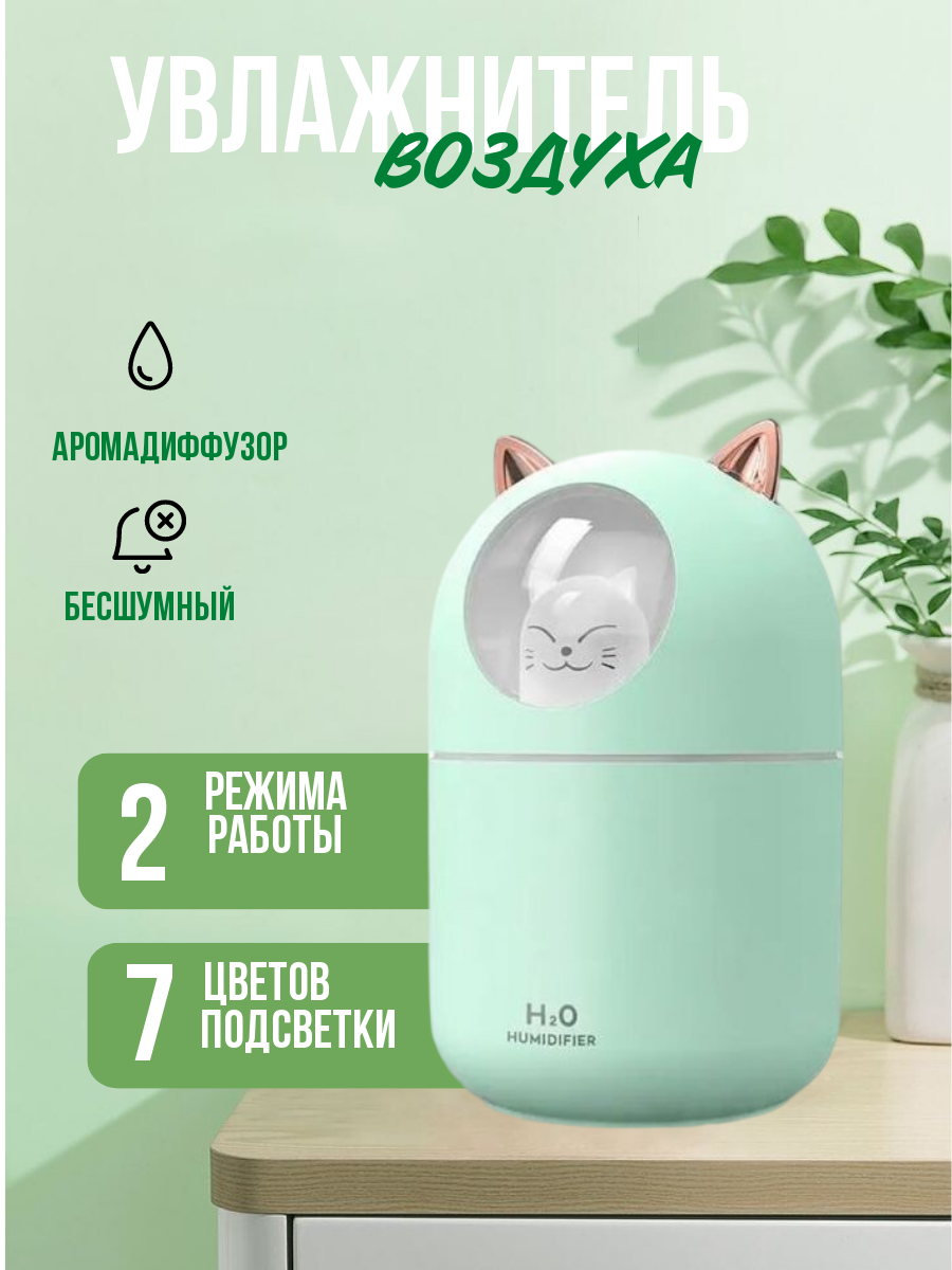 Увлажнитель воздуха для дома с подсветкой/ночник/портативный увлажнитель/увлажнитель воздуха мини Котик с подсветкой информация: