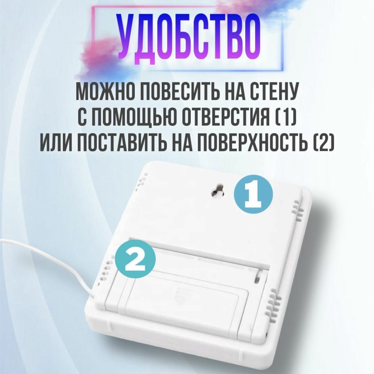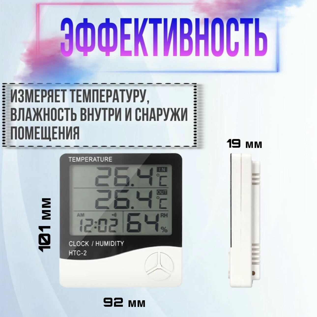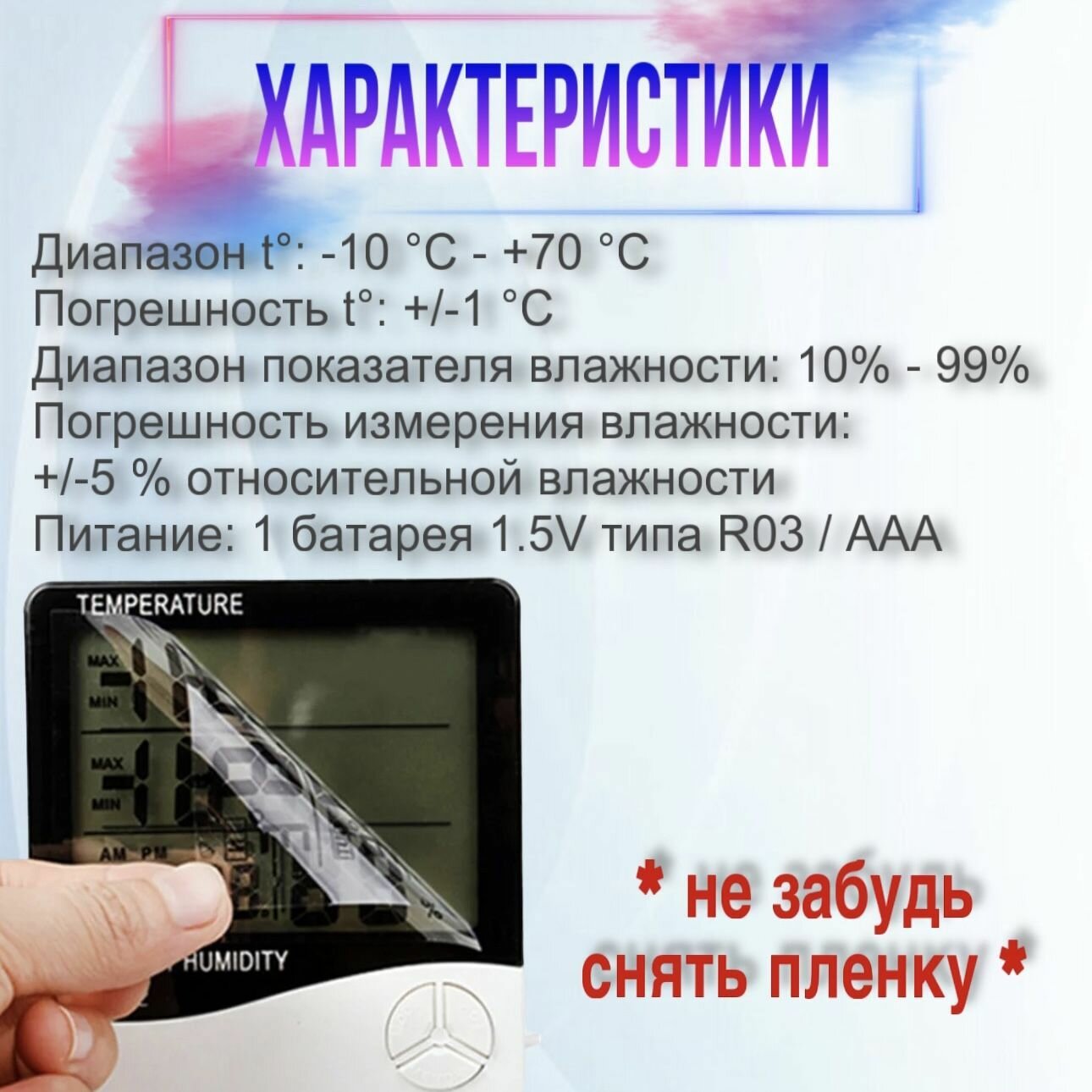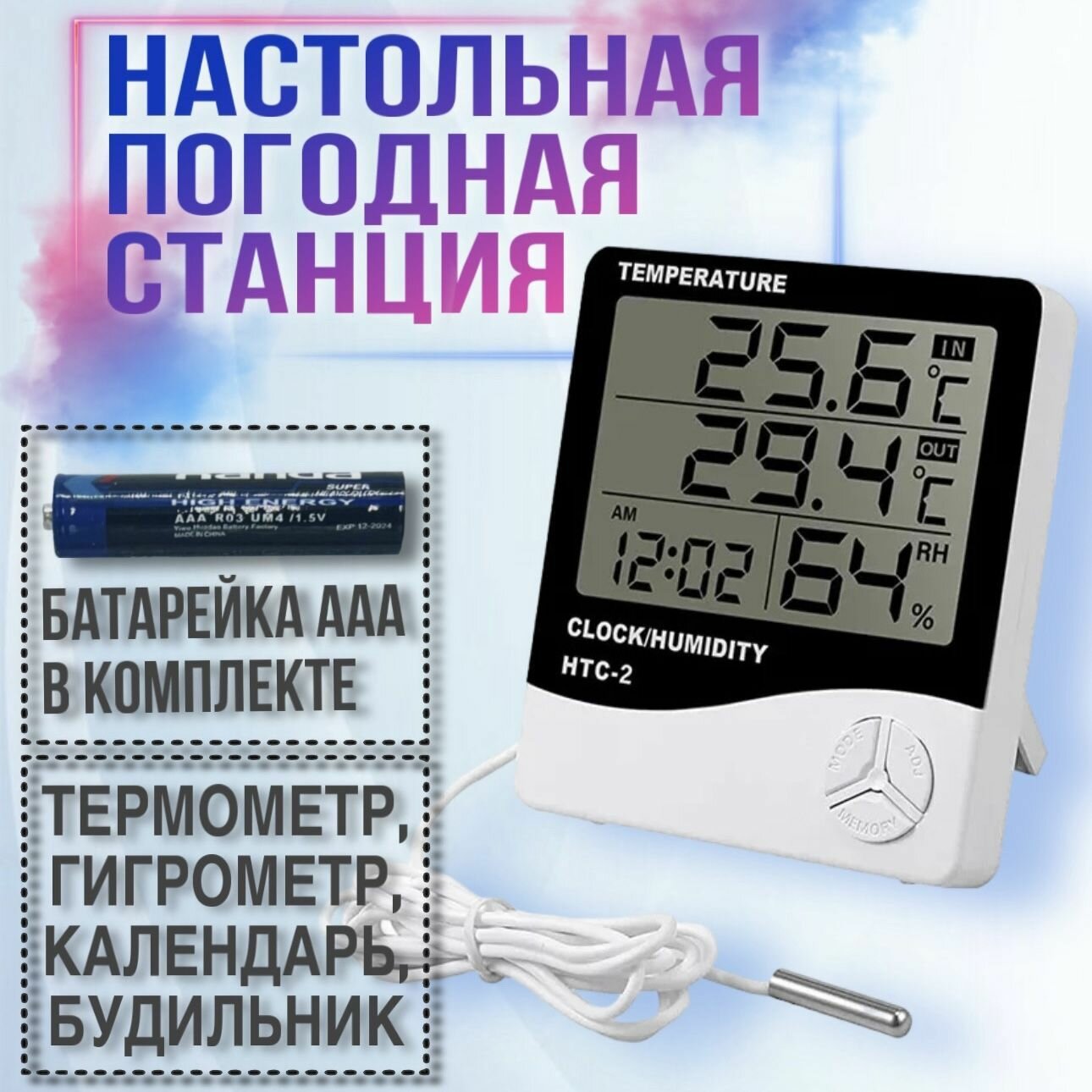 Домашний термометр с функцией гигрометра и часами, два датчика температуры встроенный и выносной информация: