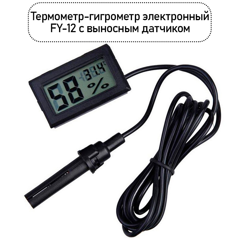 Термометр-гигрометр электронный, FY 12, ЖК дисплей с выносным датчиком, цвет - черный информация: