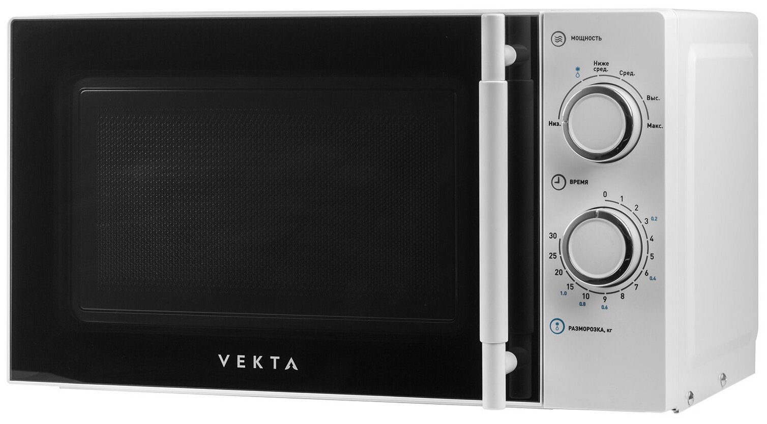 Микроволновая печь VEKTA MS720ATW, объем 20 л, мощность 700 Вт, механическое уравление, таймер, белая
