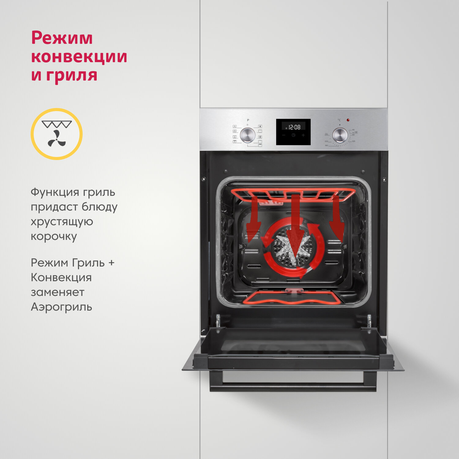Электрический духовой шкаф Simfer B4EM59070 (9 режимов работы, гриль, таймер, турбо-конвекция, серый) информация: