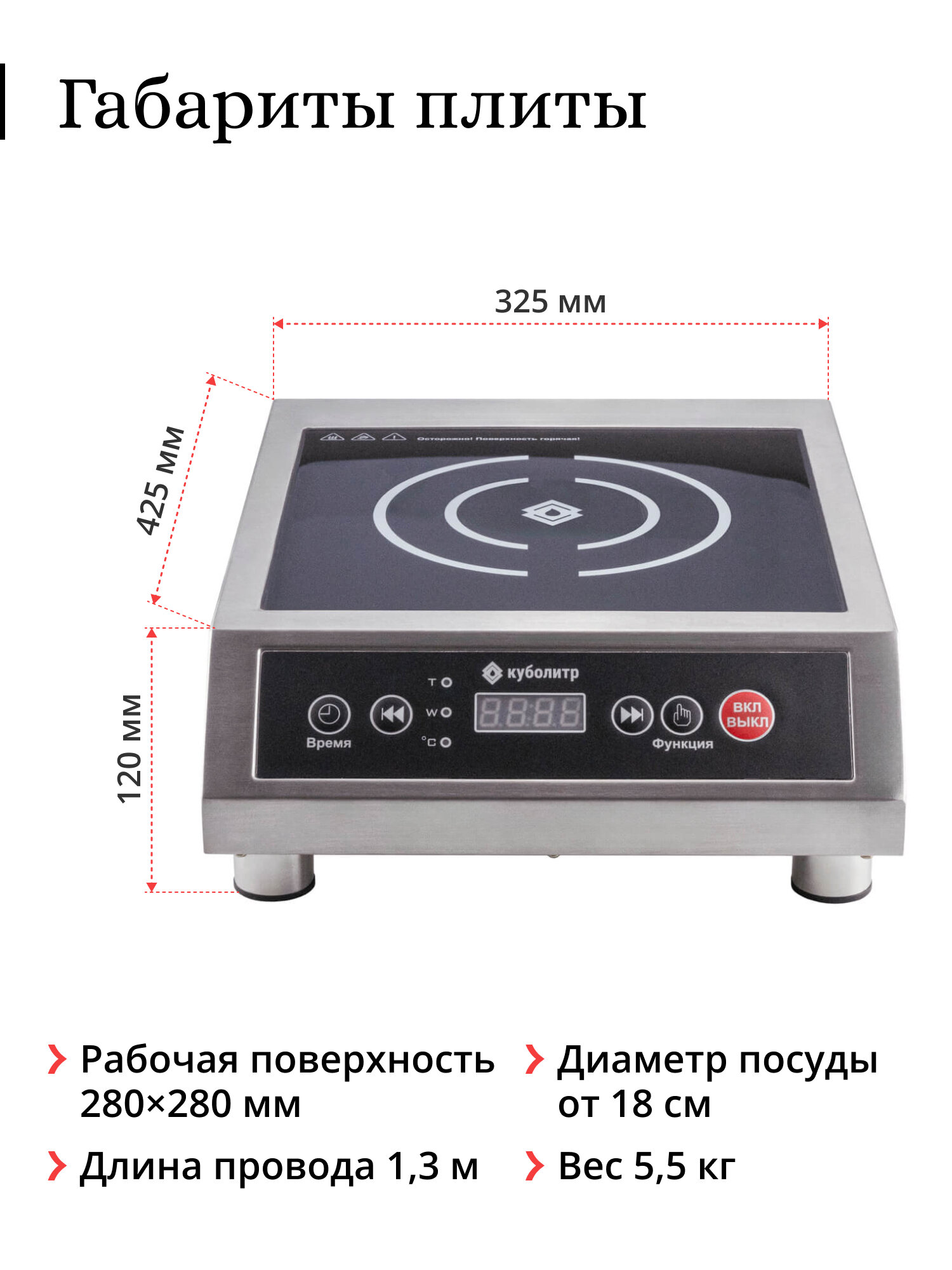 Плита индукционная для самогоноварения Куболитр, мощность 3,5 кВт 3500 Вт информация: