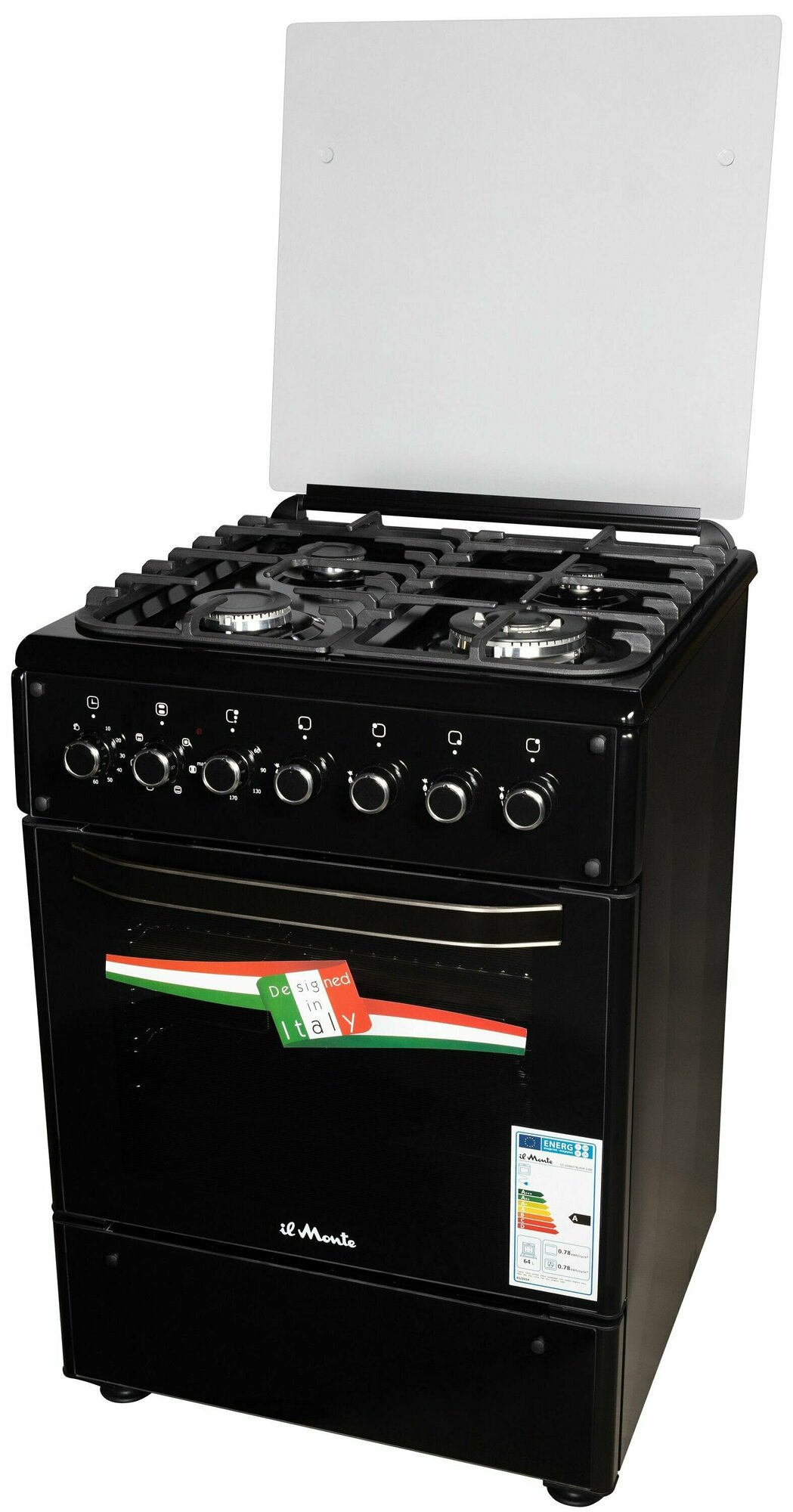 10 цен на Газовая плита, il Monte FO-GE6004 Black,60 см, Газ-контроль Элект. духовка 64 л,