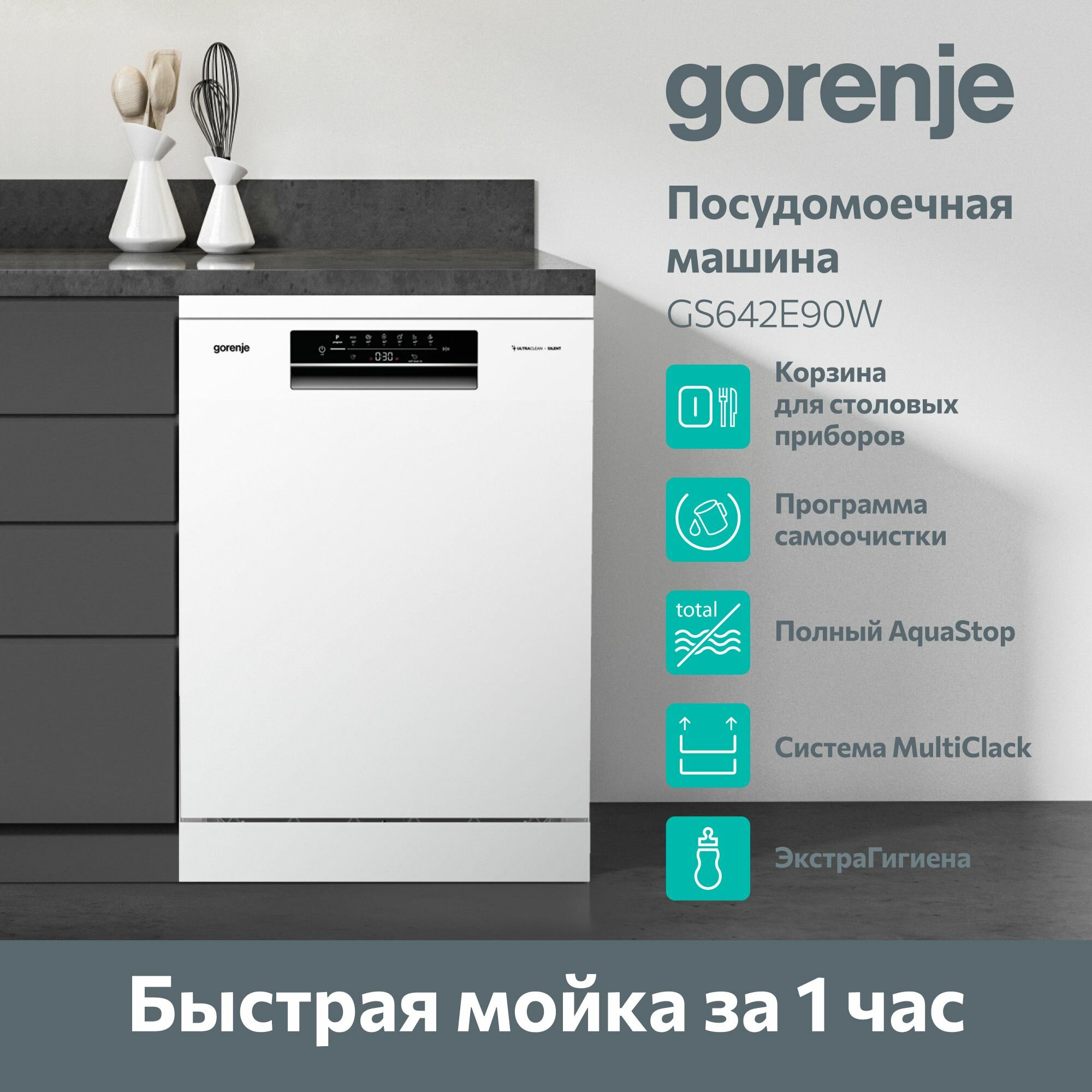 Посудомоечная машина Gorenje GS643E90W, полноразмерная, максимальная загрузка 16 комплектов, защита от протечек 40 999 ₽