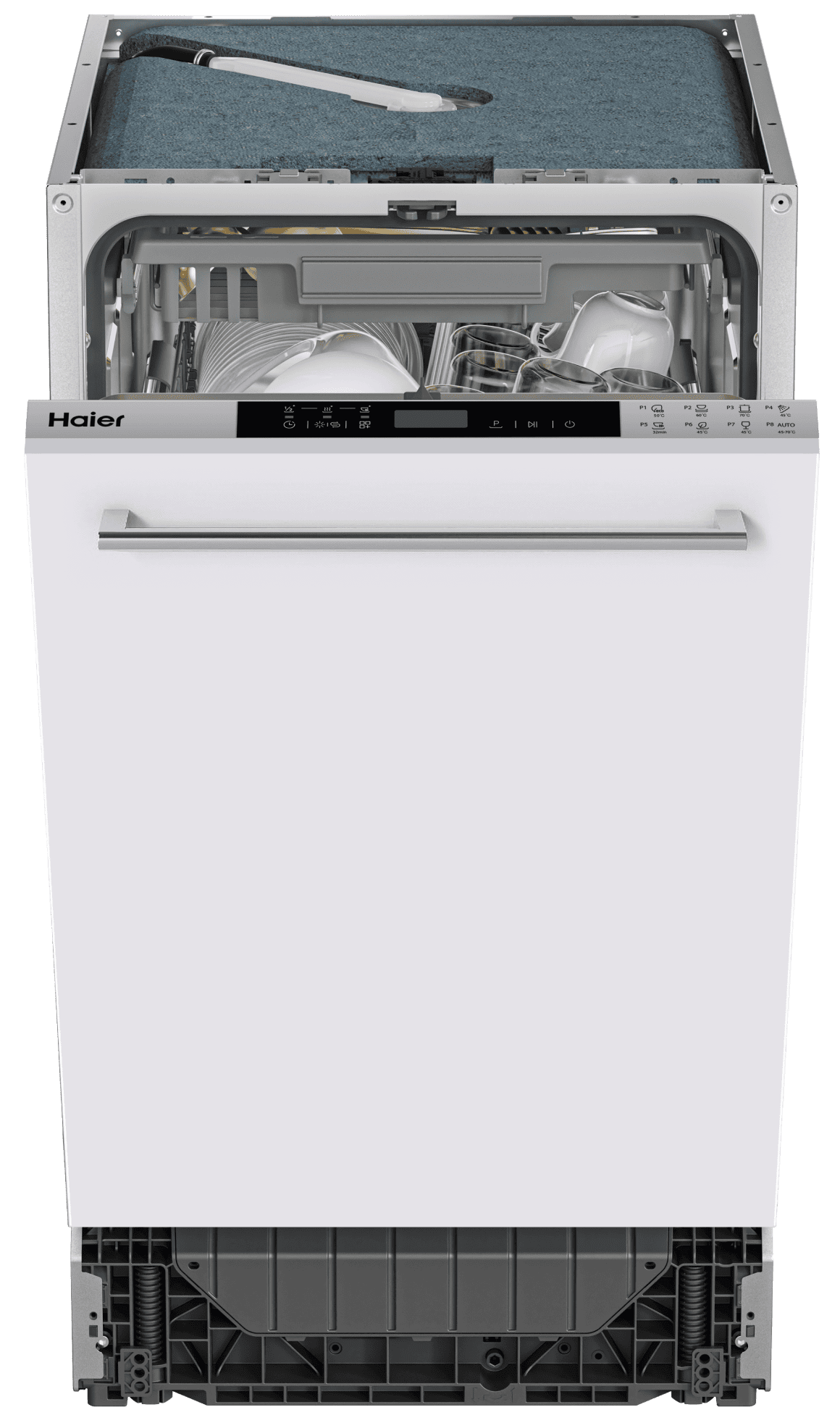 Встраиваемая узкая посудомоечная машина Haier HDWE10-394RU на 10 комплектов посуды , конденсационная сушка, третья корзина для столовых приборов.