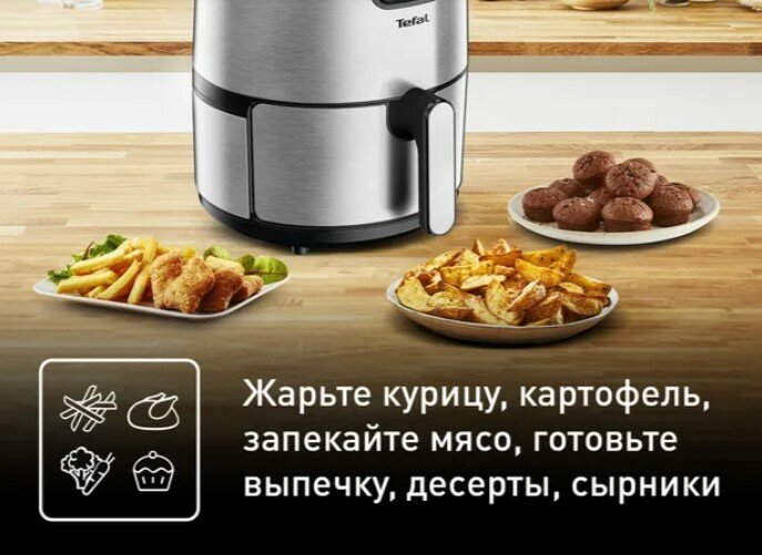 Аэрогриль Tefal Easy Fry Compact EY145810, черный, объем 3 л, LCD дисплей, 10 автоматических программ