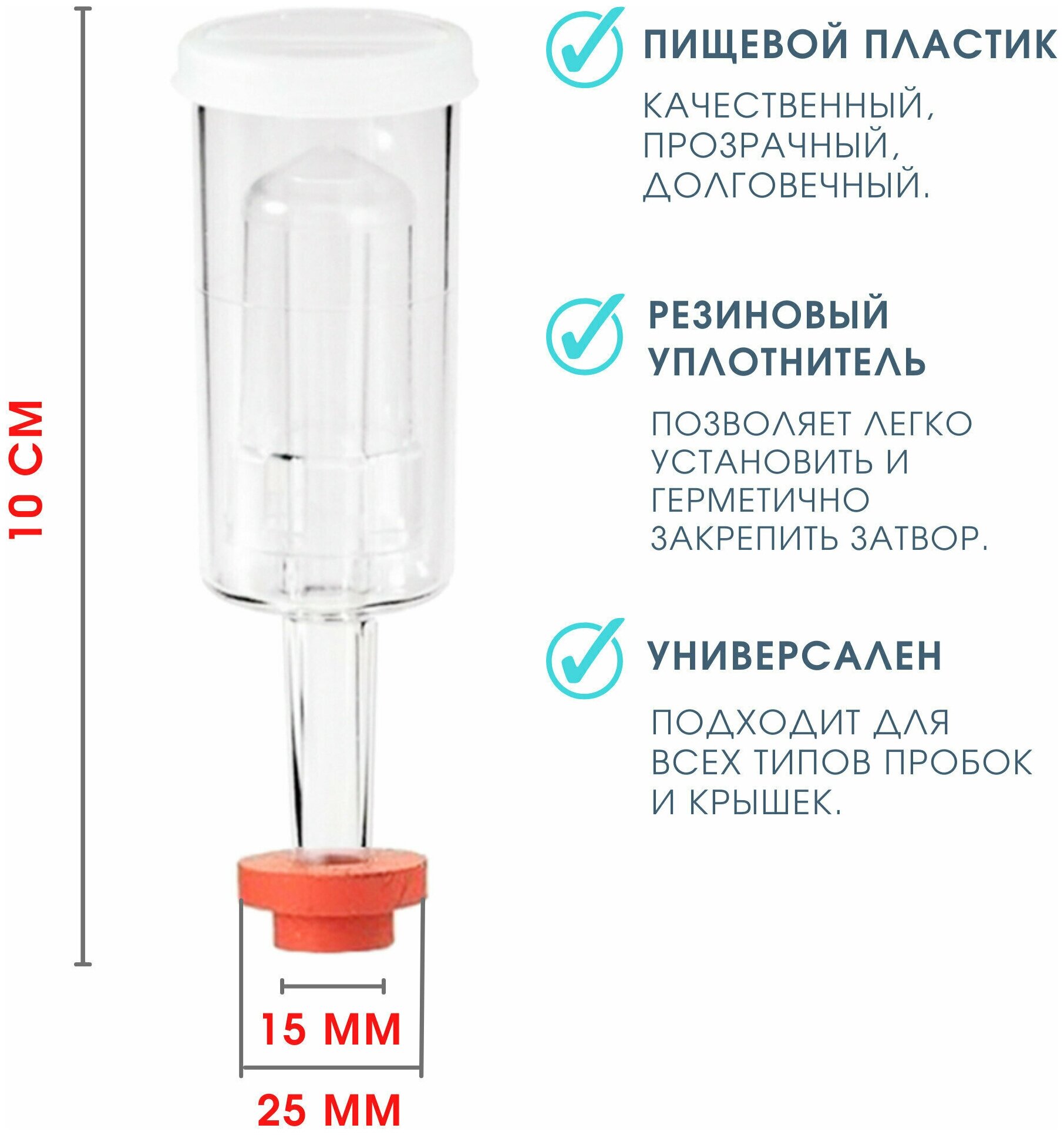 10 цен на Комплект для бродильных емкостей: Гидрозатвор бесшумный (трехкамерный) + Кран пластиковый с фильтром + LCD термометр (градусник-наклейка).