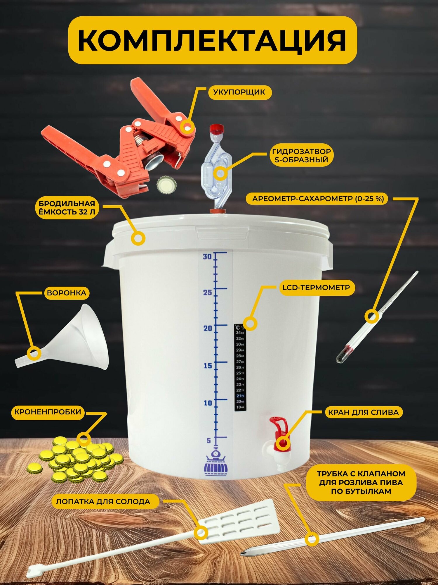 | В комплекте | кронен-пробки / ложка для размешивания / мерная емкость |