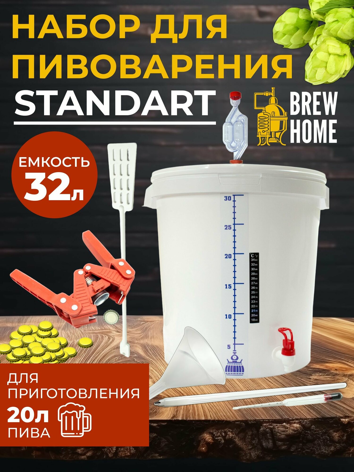 10 цен на Домашняя пивоварня Standart, набор для пивоварения 32 л.