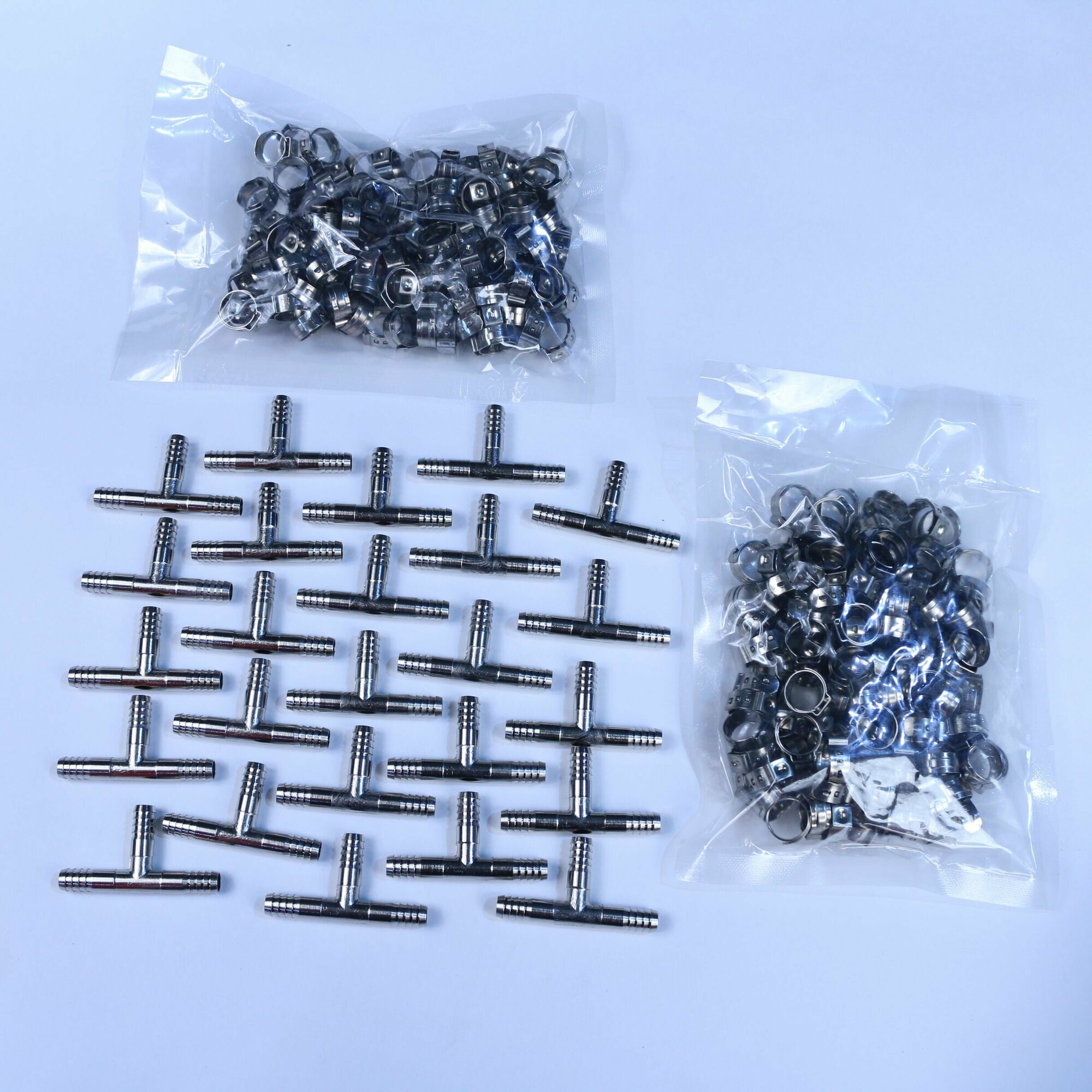 10 цен на Комплект хомутов 200 шт. и разветвителей 25 шт. для шланга/Зажимы для шланга, Т-образные разветвители