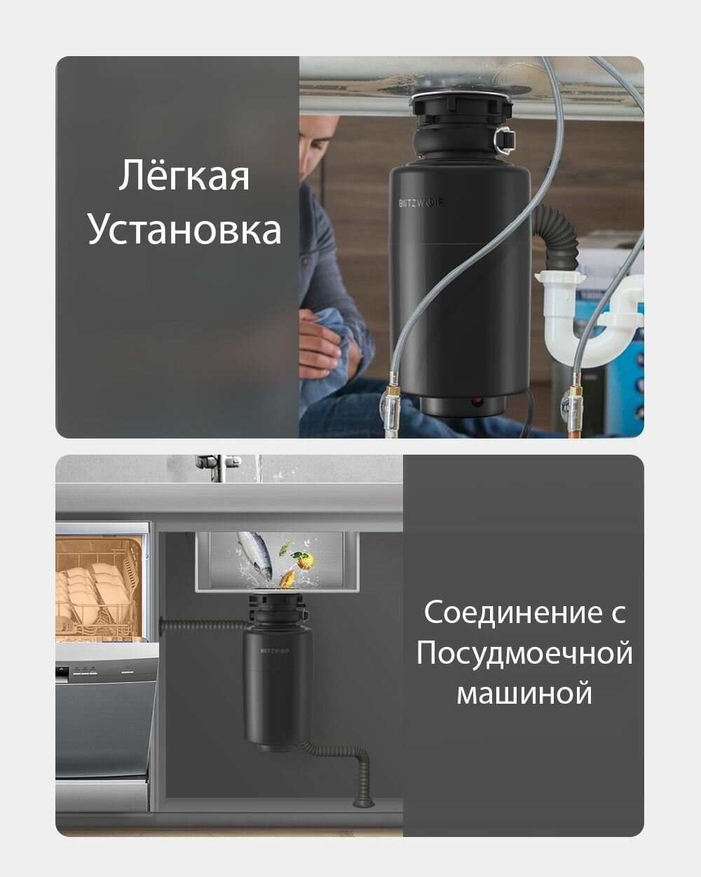 Отзывы на Измельчитель бытовых отходов BlitzWolf BW-WD1 Kitchen Waste Disposal Unit 840ML with Two-level Grinding Black
