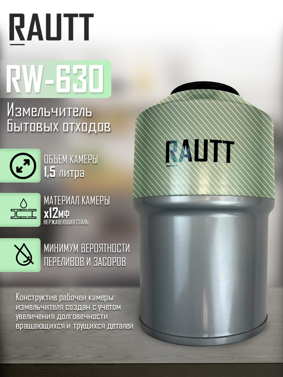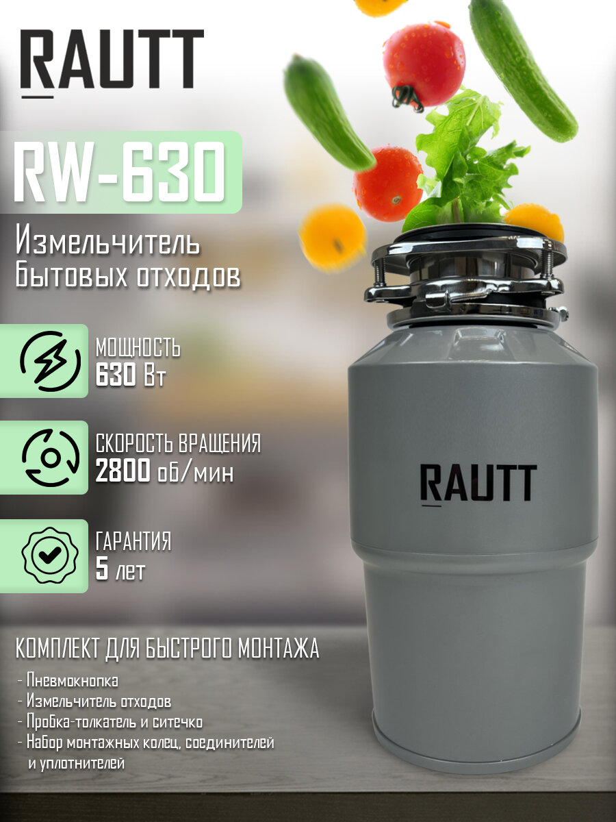 Измельчитель бытовых отходов кухонный RAUTT, RW-630, электрический для раковины, встраиваемый измельчитель пищевых отходов информация: