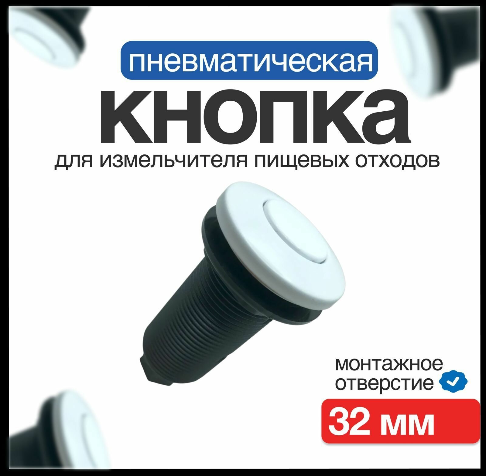 Пневматическая кнопка для измельчителя пищевых отходов длинная белая глянец информация: