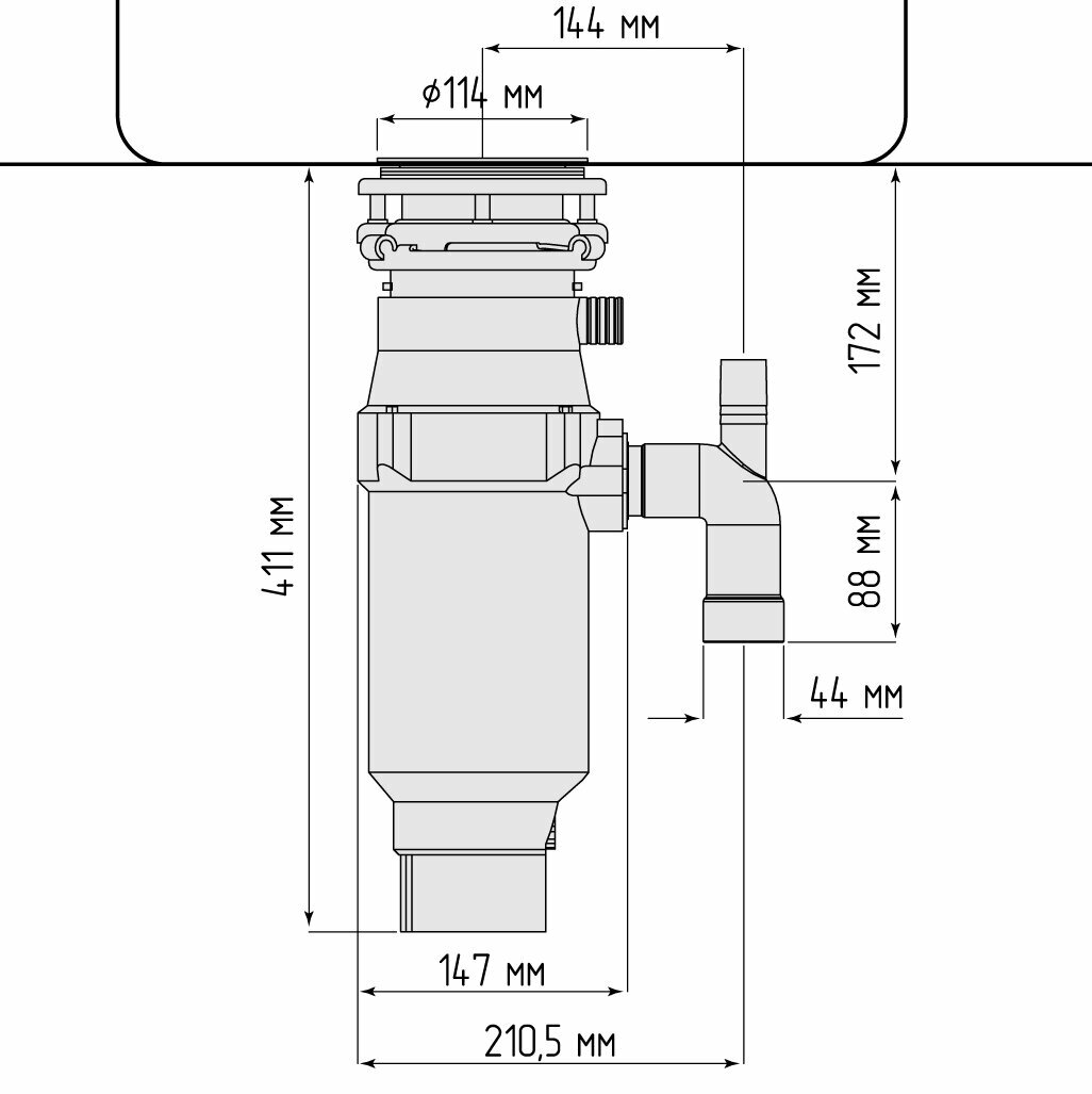 Измельчитель пищевых бытовых отходов AIRHOT FWD-550. 0.550 кВт, 3600 об/мин, 3 стадии перемолки
