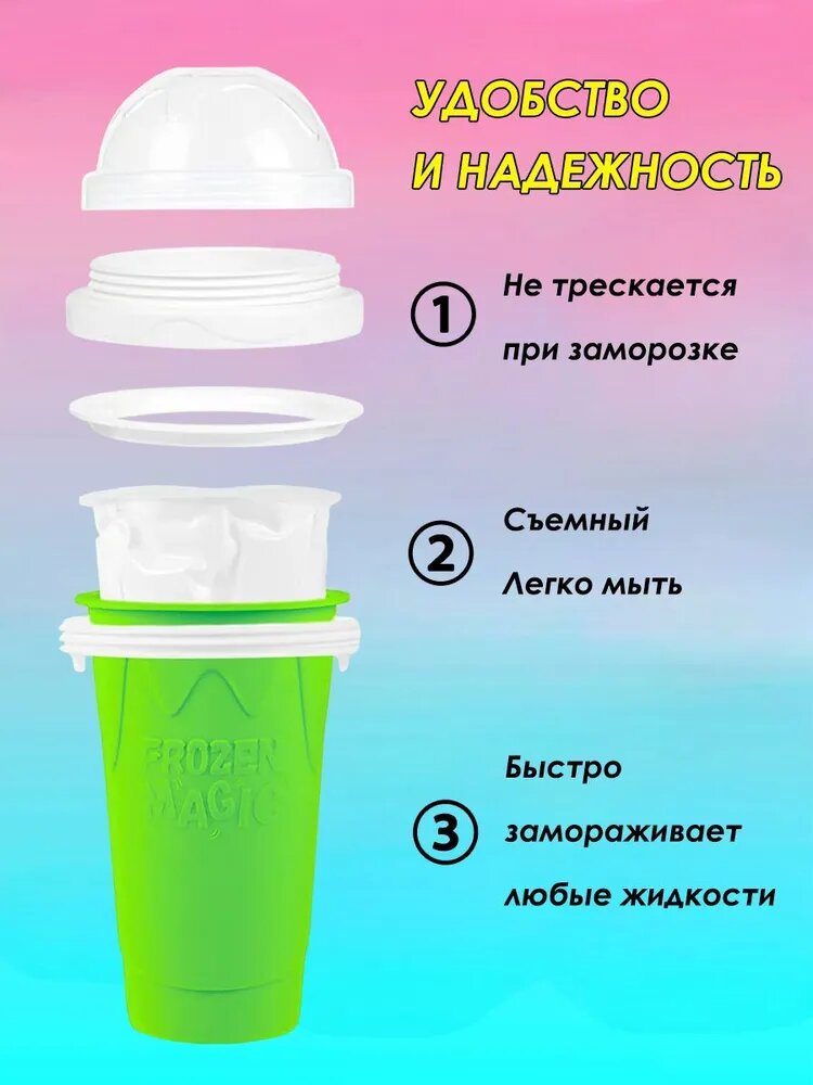 Отзывы на Замораживающий зеленый слаш стакан Frozen Magic для напитков. Для приготовления домашнего мороженого из сока, молока, газировки и т. д. Подарок ребенку.