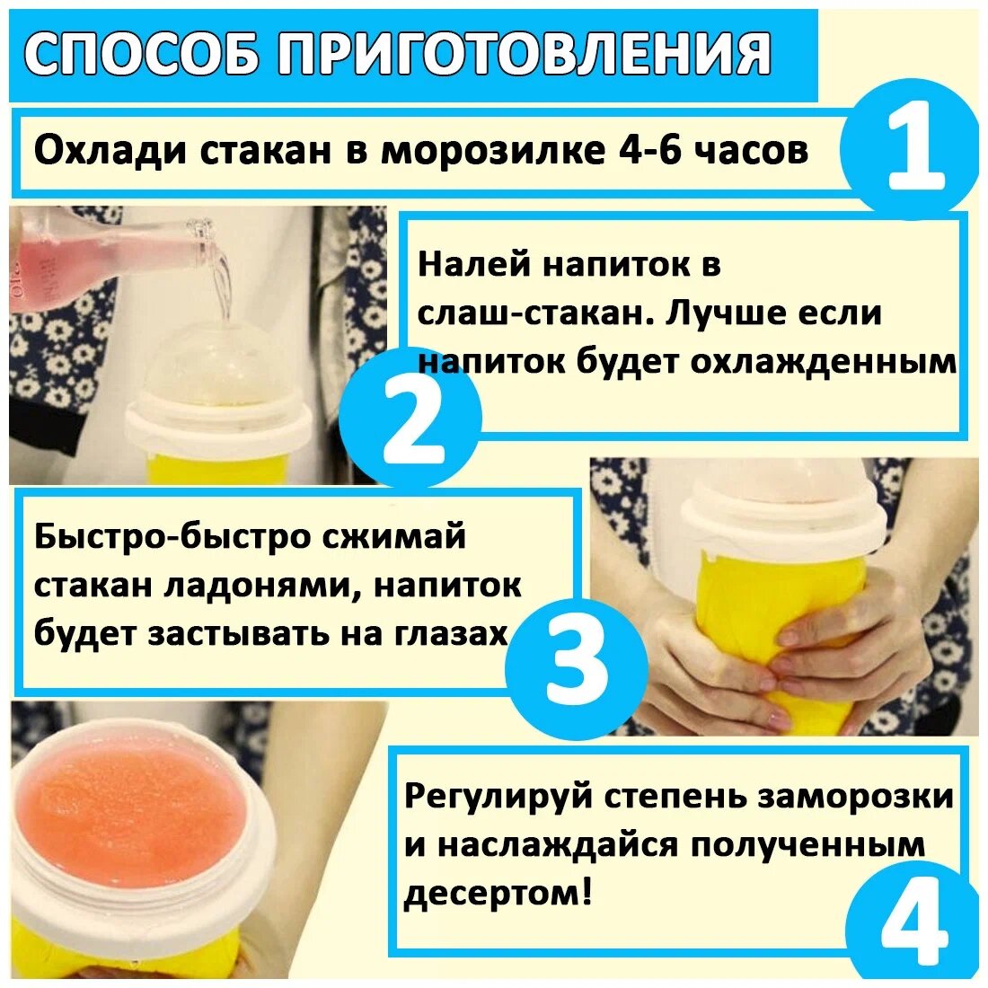 Замораживающий желтый слаш стакан Frozen Magic для напитков. Для приготовления домашнего мороженого из сока, молока, газировки и т. д. Подарок ребенку. информация: