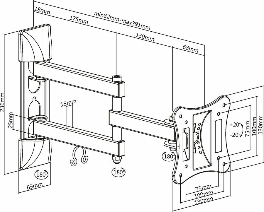 Отзывы на Кронштейн для телевизора ULTRAMOUNTS UM895, 13-27", настенный, поворотно-выдвижной и наклонный, черный