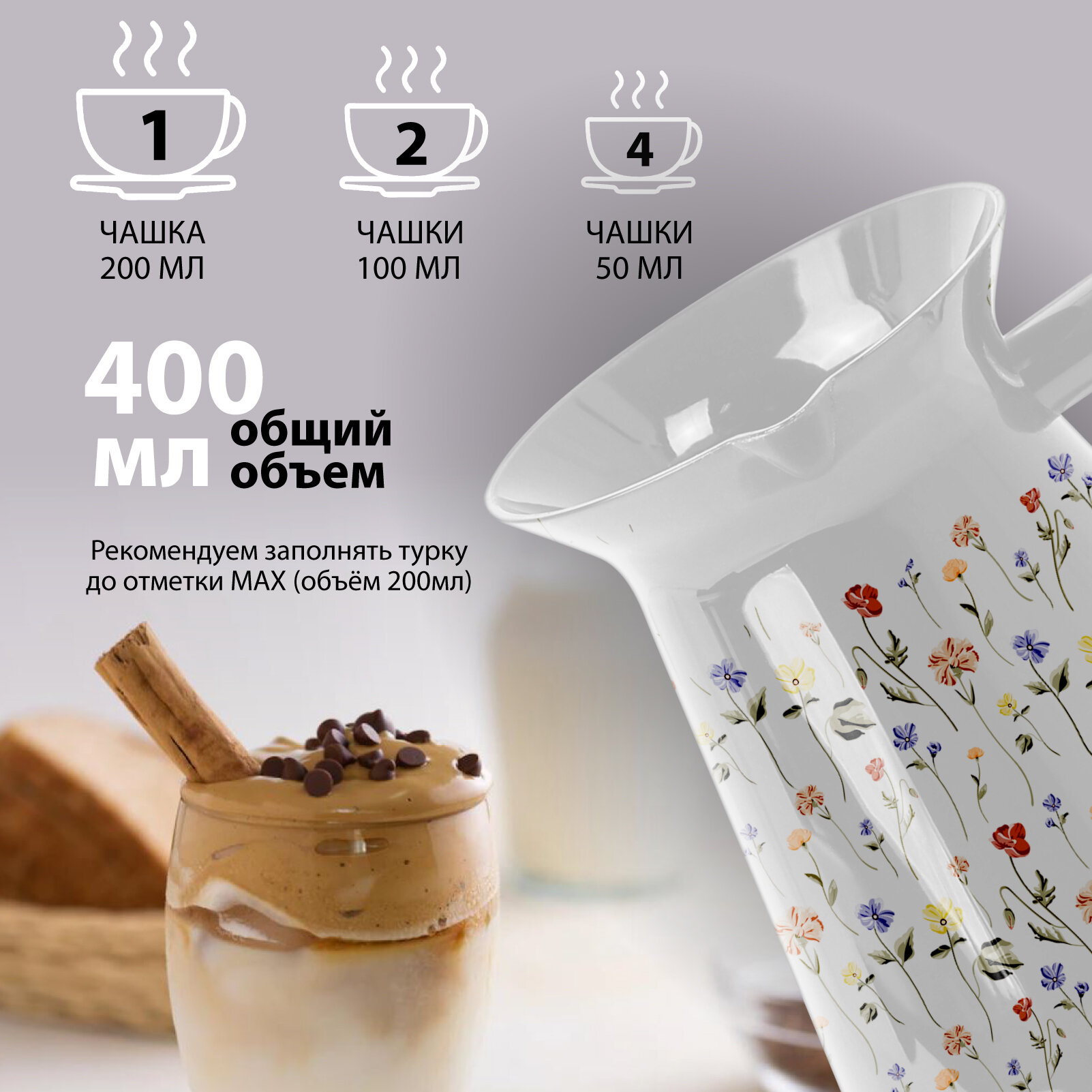 Турка электрическая HOTTER с автоподогревом и смарт-контролем, белая с дизайном "Цветы" информация: