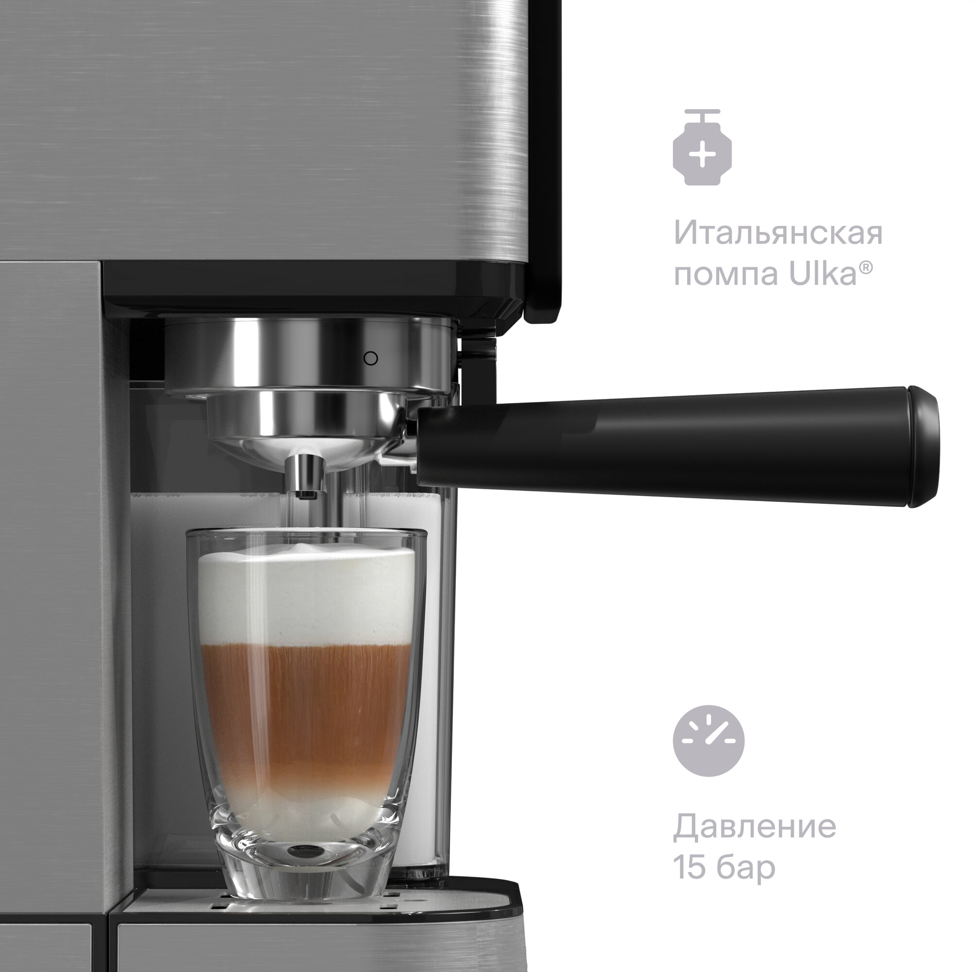 Кофеварка рожковая с автокапучинатором Tuvio TCM04EA, черный/серебристый информация: