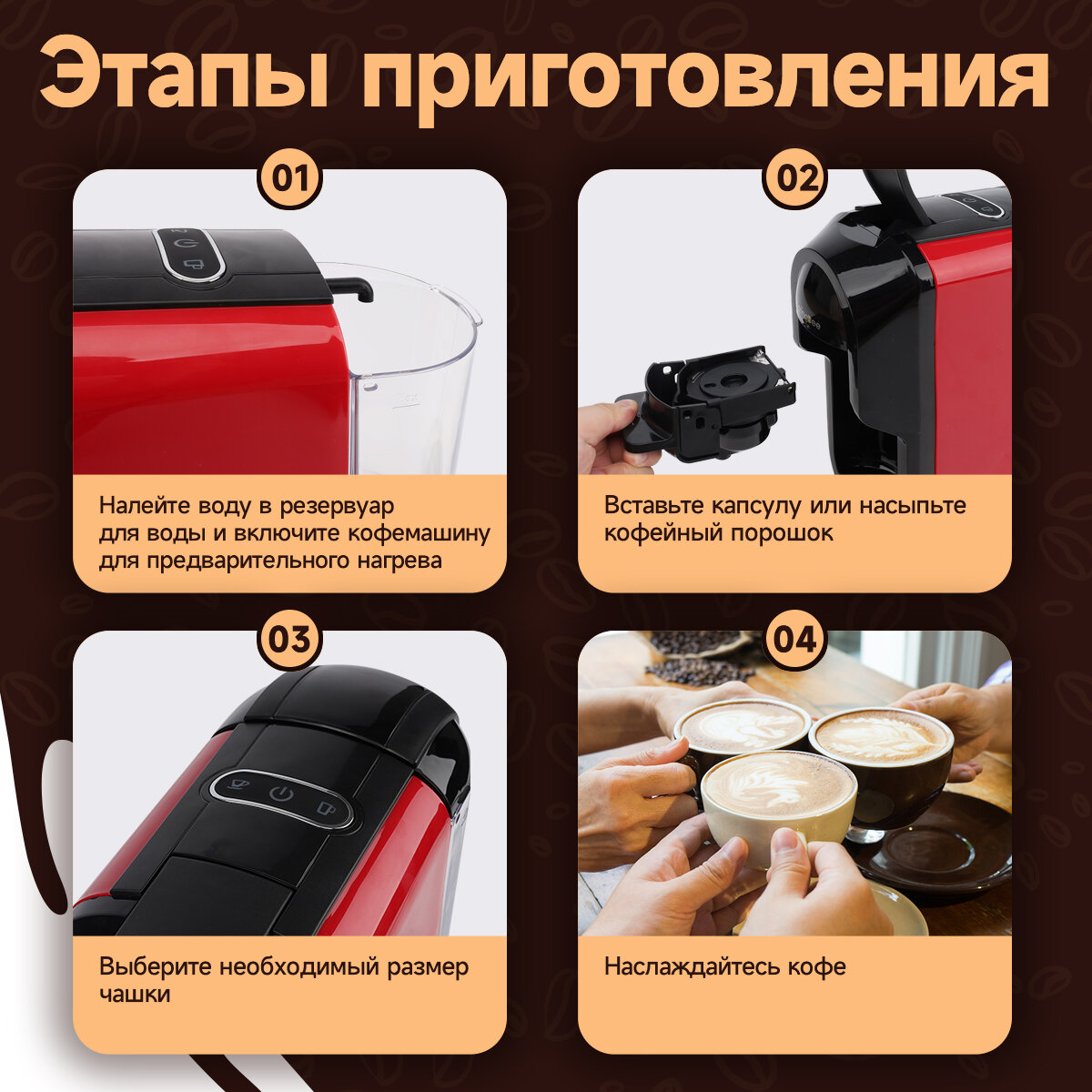 0 отзывов, средняя оценка 0. Чтобы купить «Капсульная кофемашина KaringBee ST-510, 4-в-1 красный/мощность 1450 Вт и давлением 19 бар/эспрессо и американо/капсулы Nespresso+Dolce Gusto+ESE 44мм+молотный кофе» по лучшей цене мы сканируем авито, алиэкспресс, маркет, озон, савеловский, плеер, горбушку, беру, официальные сайты и находим минимальную. Администрация не несет ответсвенность актуальность цен на Капсульная кофемашина KaringBee ST-510, 4-в-1 красный/мощность 1450 Вт и давлением 19 бар/эспрессо и американо/капсулы Nespresso+Dolce Gusto+ESE 44мм+молотный кофе, более подробно узнавайте на сайте магазина.