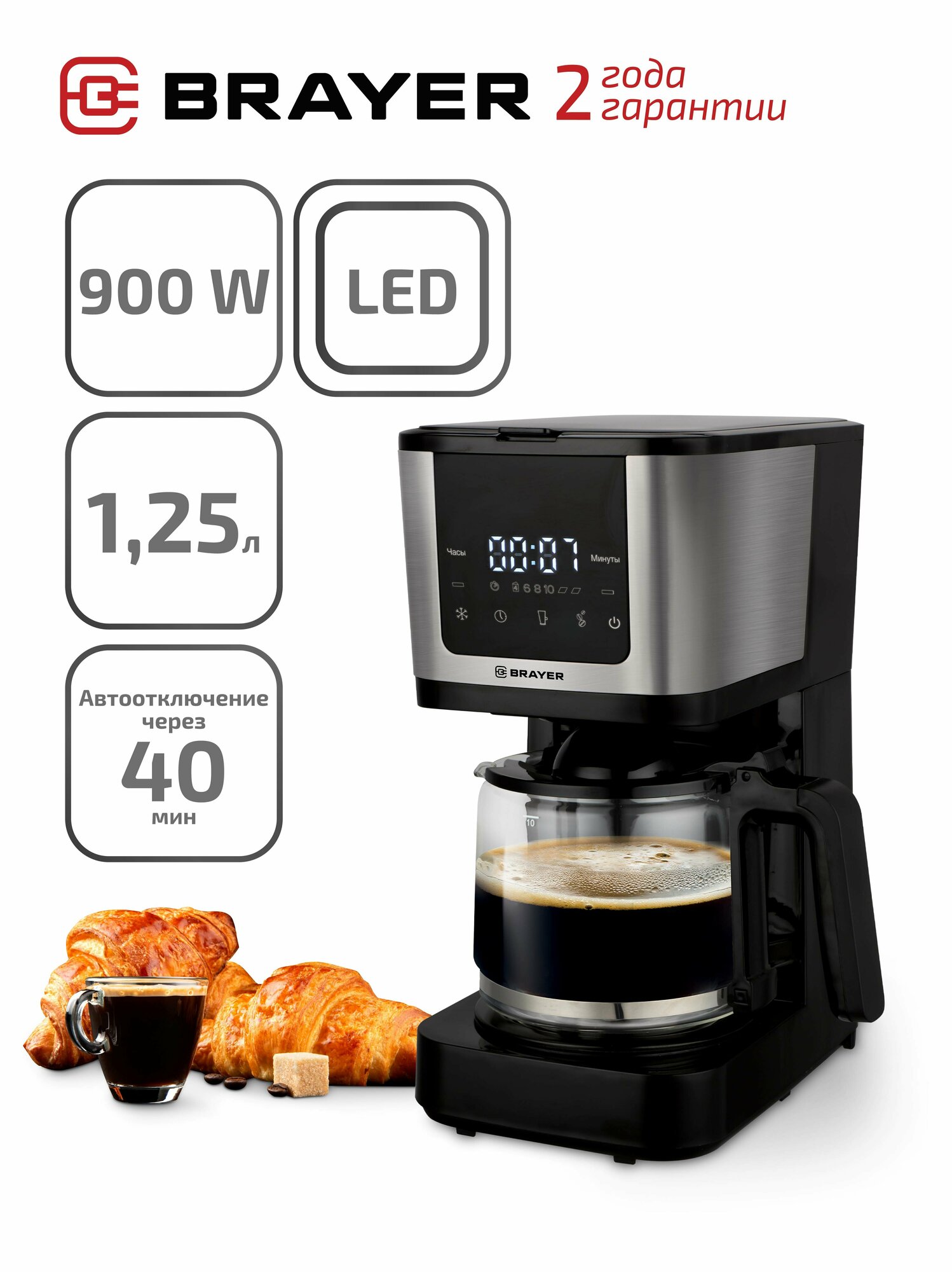 Кофеварка капельная BRAYER BR1120, 1000 Вт, объем 1,5 л, поддержание температуры, черная, 456902