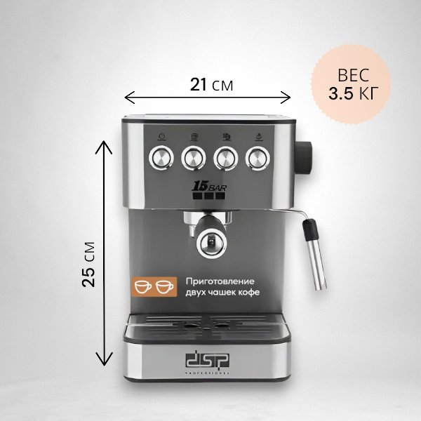 Электрическая кофемашина/ Мощная кофемашина/ Мощность 850 Вт/ С капучинатором/ Давления 15 Бар информация: