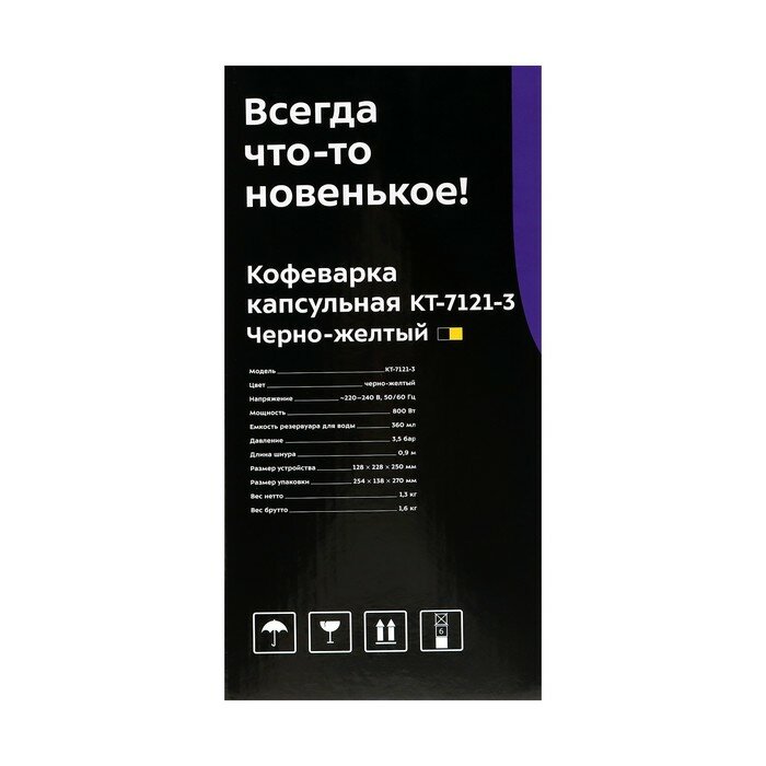Кофеварка КТ-7121-3, капсульная, 800 Вт, 0.36 л, жёлтая 7 836 ₽