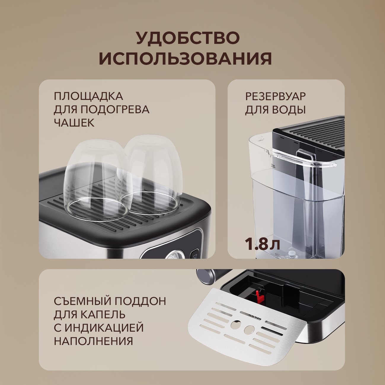 | Дополнительные функции | автоотключение после приготовления напитка / блокировка включения без воды / подогрев чашек / предварительное смачивание / противокапельная система |