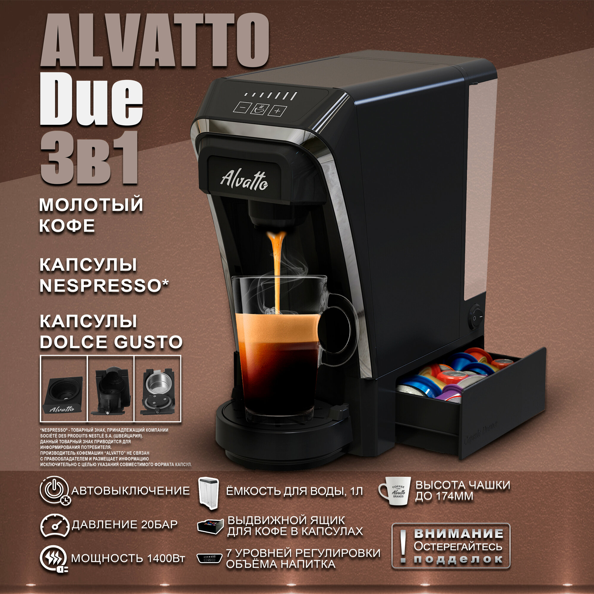 10 цен на Универсальная кофемашина Alvatto Due 3-в-1 (молотый кофе + адаптеры для капсул Nespresso и Dolce Gusto) / Black