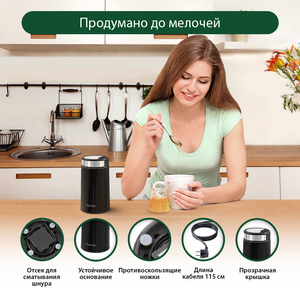 Кофемолка MARTA MT-CG2180A черный жемчуг информация: