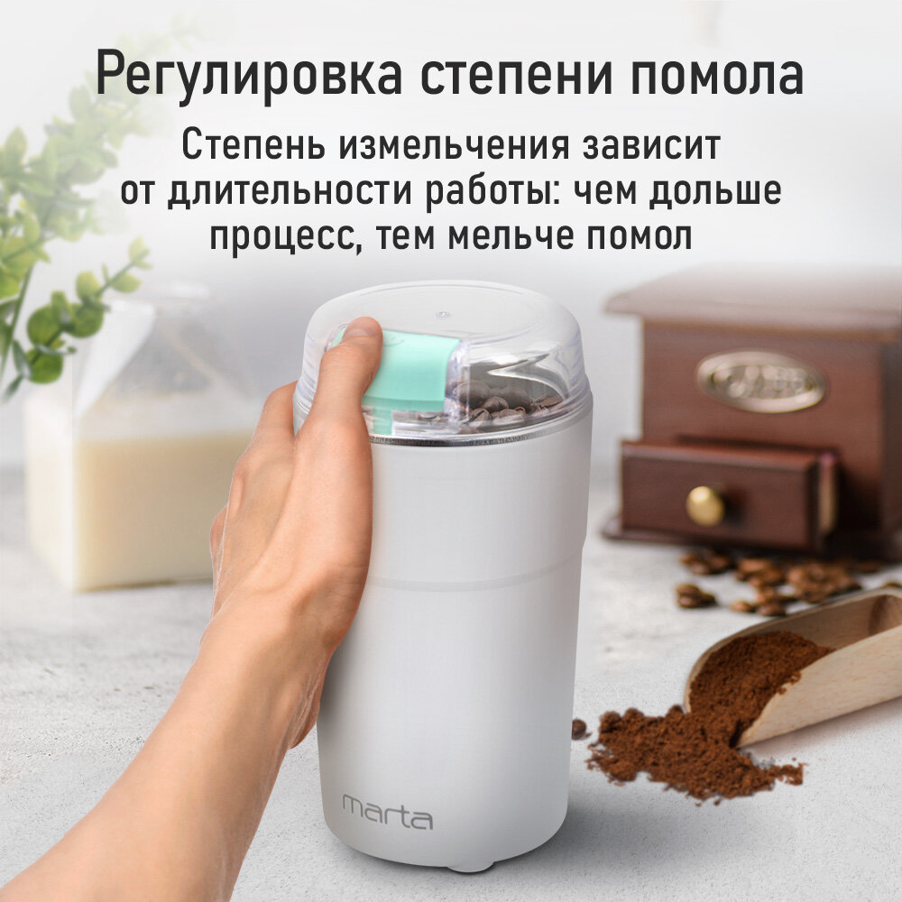 Кофемолка MARTA MT-CG2188A белый/ментол информация: