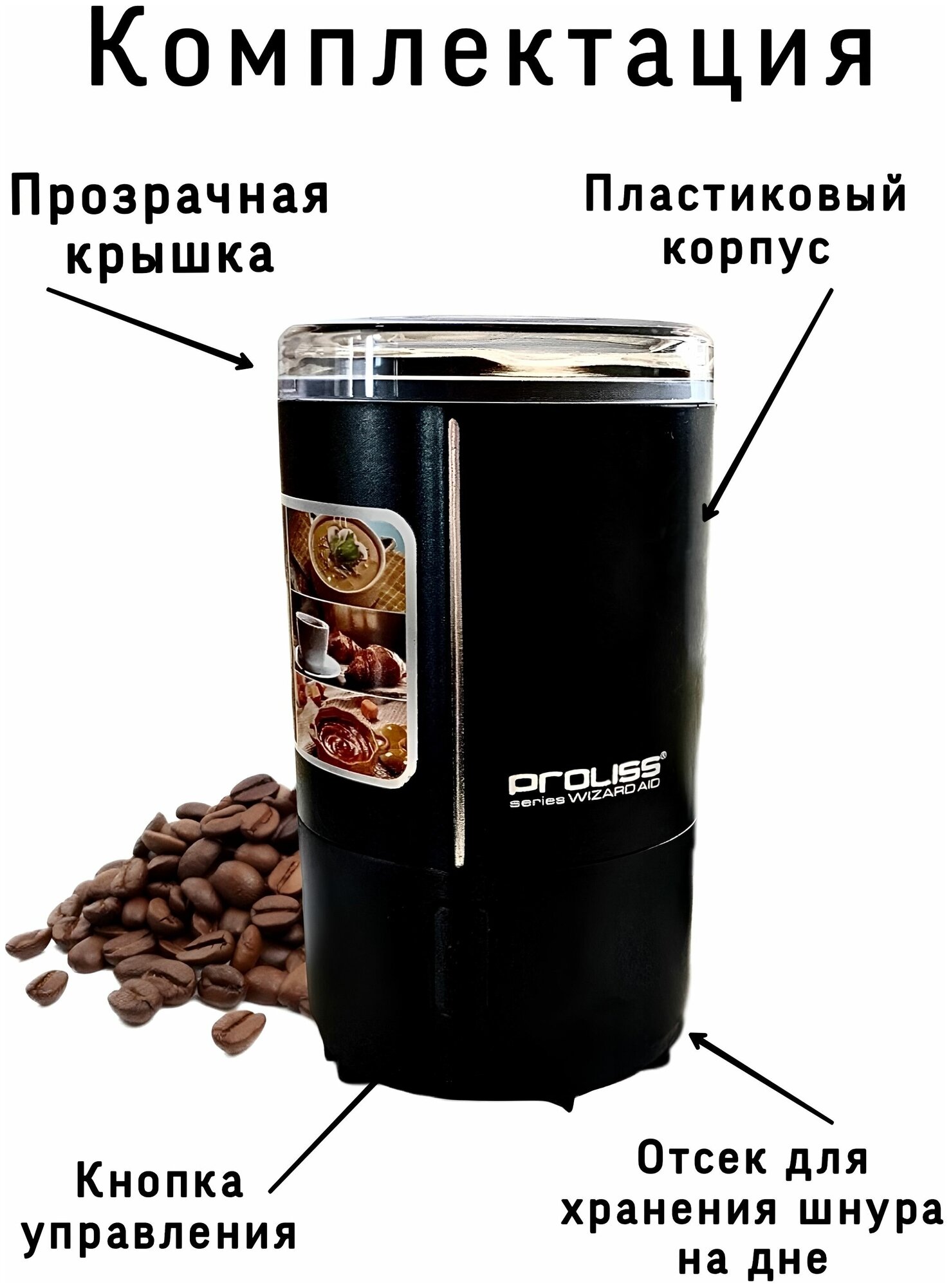 10 цен на Кофемолка электрическая Proliss PRO-9101 для кофе, специй, черная, измельчитель