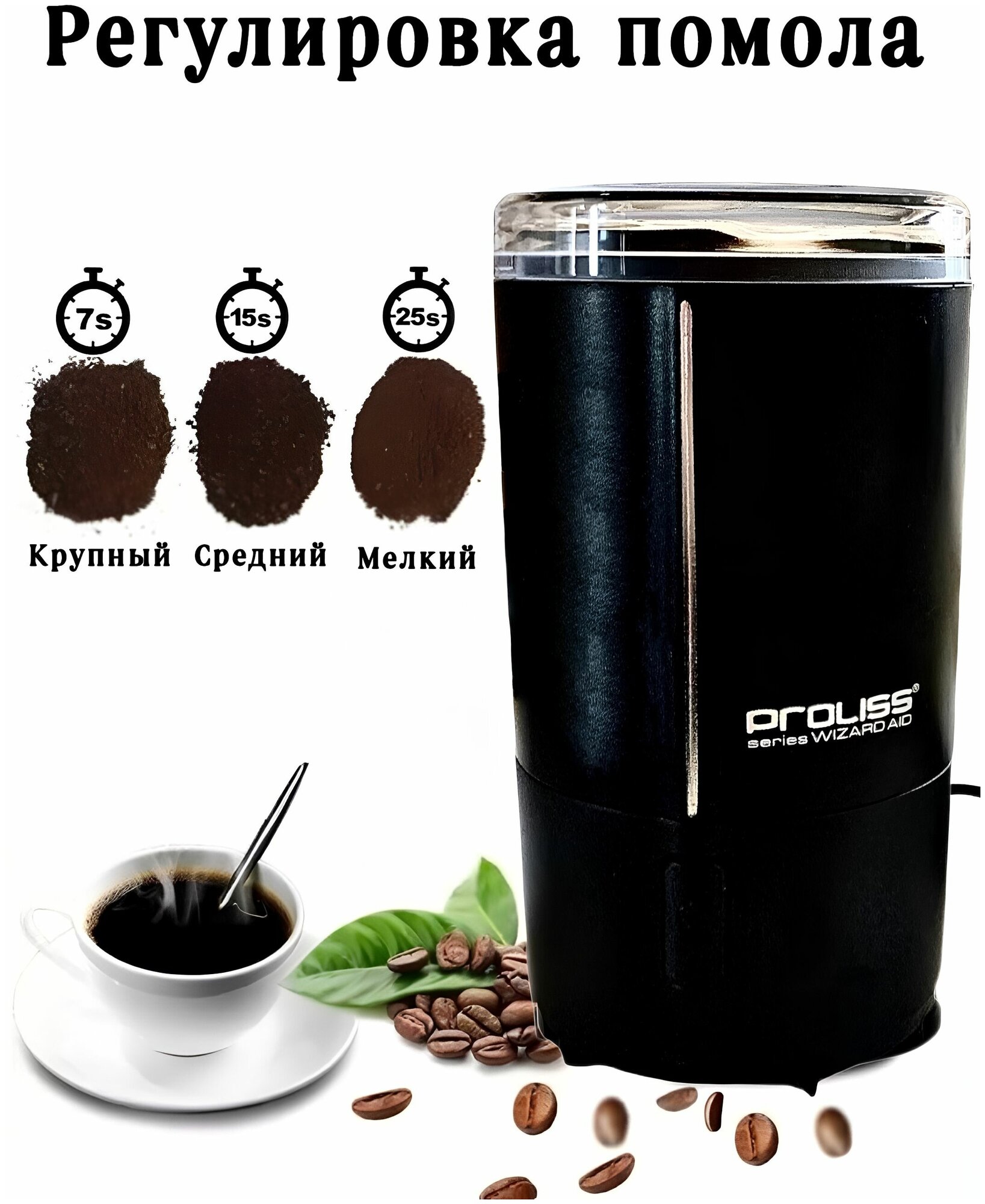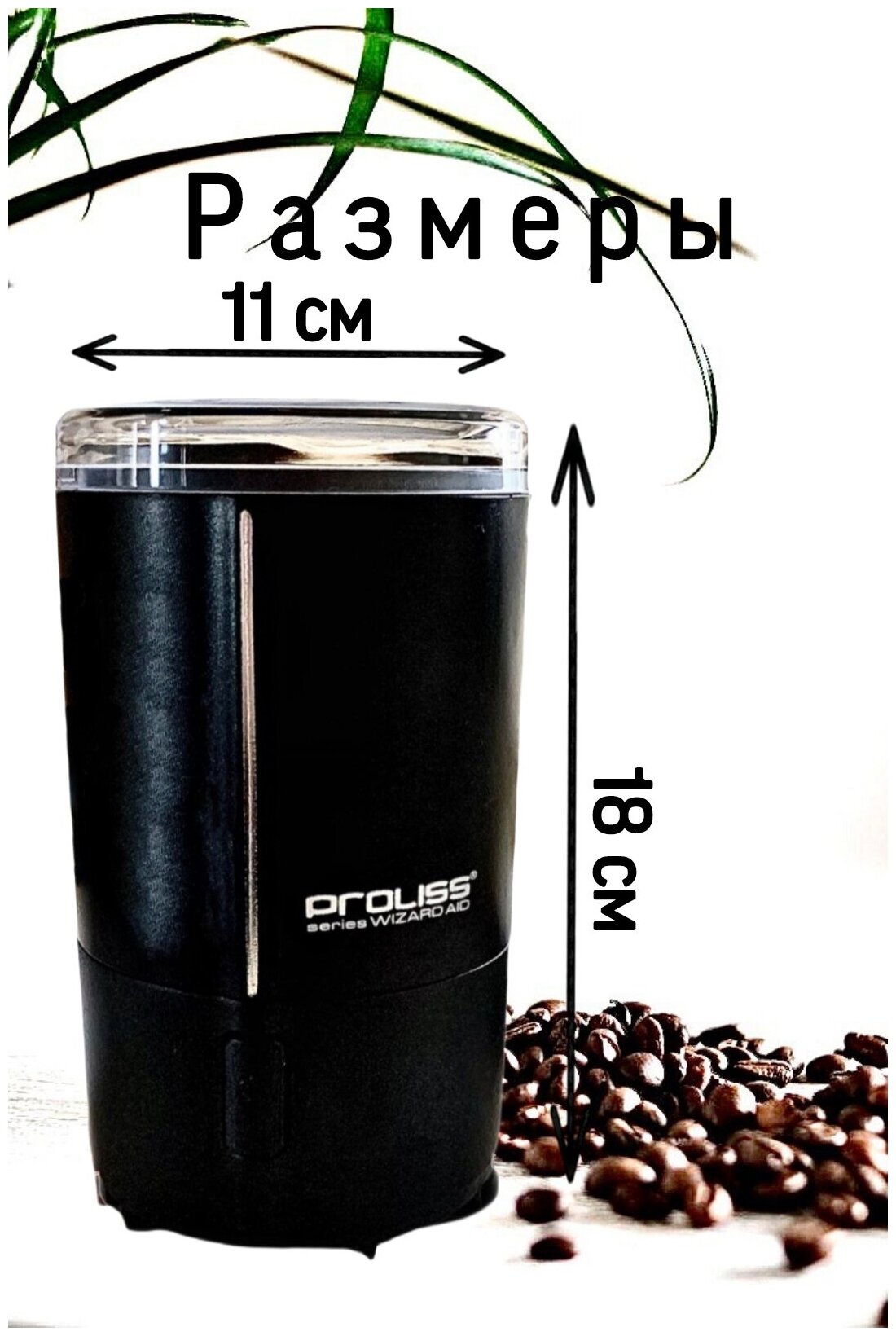Кофемолка электрическая Proliss PRO-9101 200 вт, для кофе, мощная черная, измельчитель