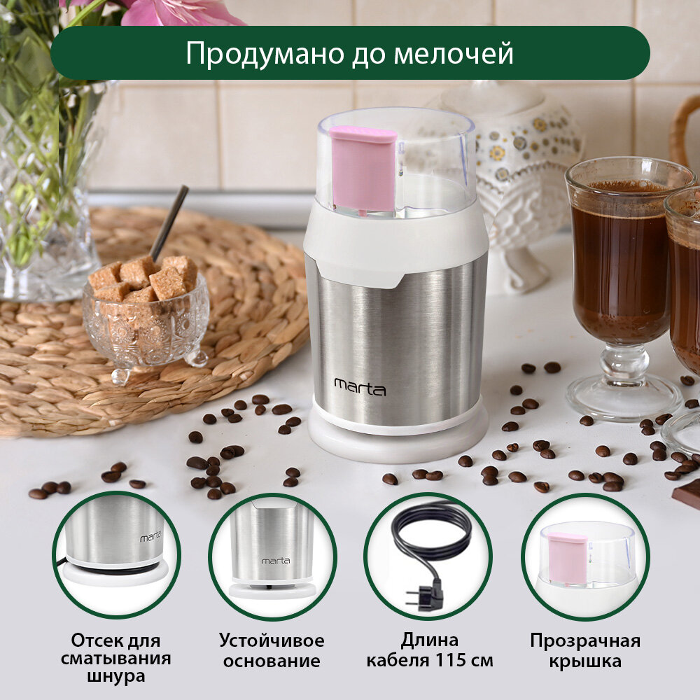 Кофемолка MARTA MT-2168 розовый опал информация:
