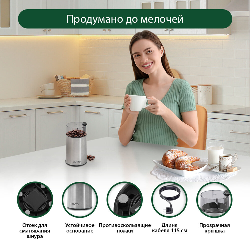 Кофемолка MARTA MT-CG2180C черный жемчуг информация:
