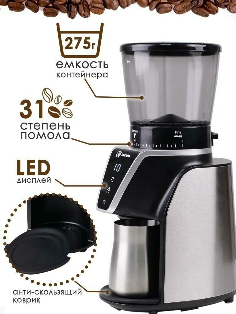 | Конструкция | дозатор, счетчик порций, емкость для молотого кофе (на 100 г) |