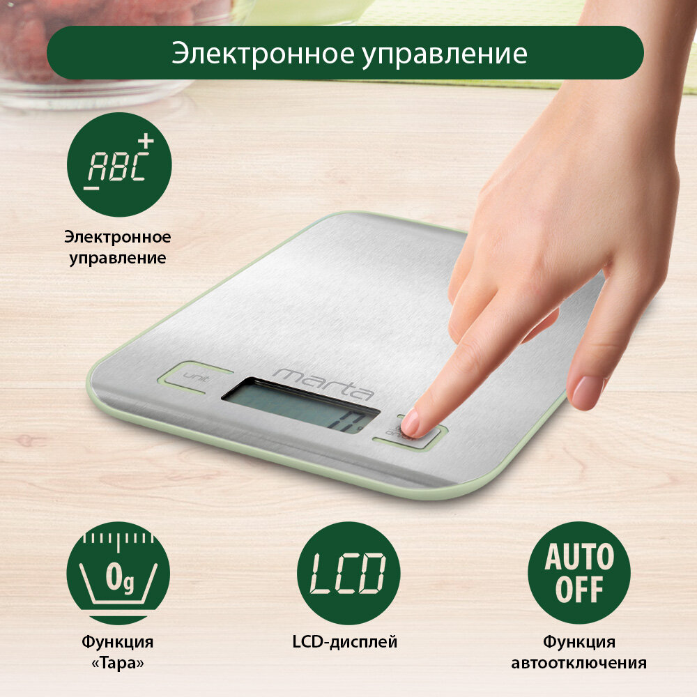 MARTA MT-1646 (new) зеленый нефрит весы кухонные информация: