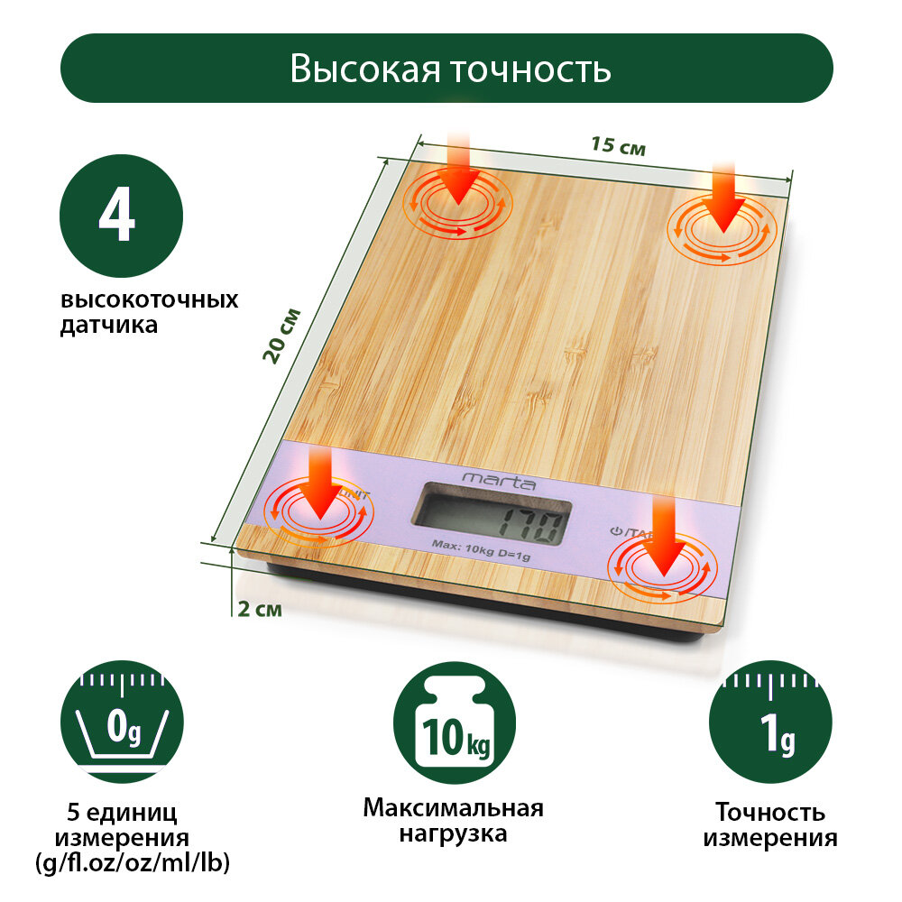 Отзывы на MARTA MT-1639 {new} лиловый бамбук весы кухонные сенсор, встроенный термометр