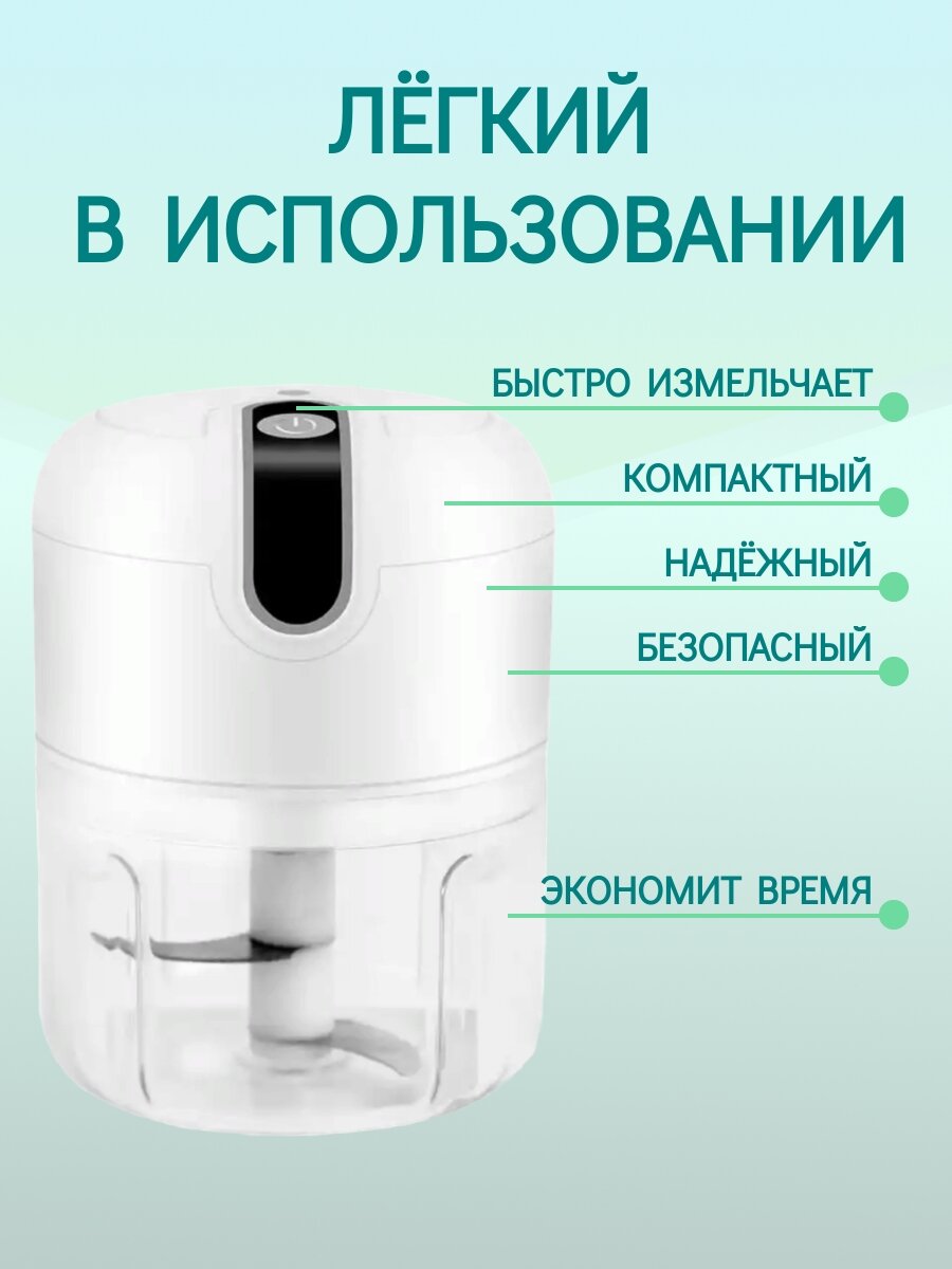 Измельчитель кухонный. Блендер электрический. Беспроводной комбайн овощерезка для специй/овощей/фруктов и детского питания. USB зарядка.
