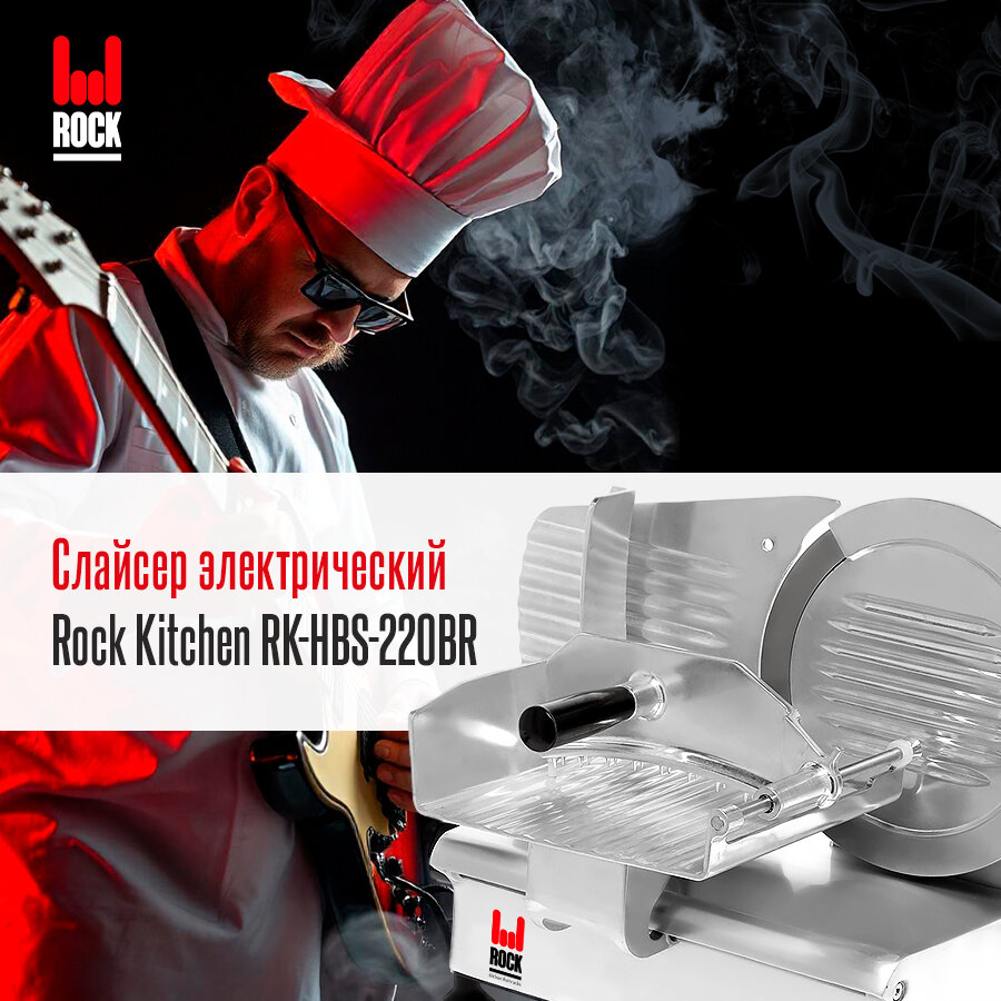 Слайсер Rock Kitchen, арт. RK-HBS-220BR, ломтерезка электрическая для нарезки мяса, сыра, колбасы информация: