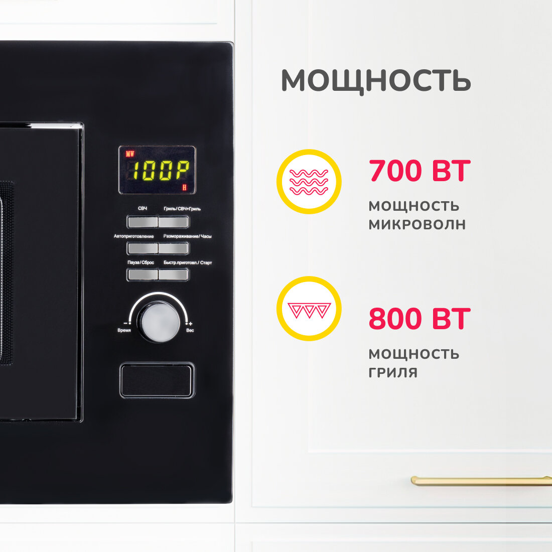Встраиваемая микроволновая печь Simfer MD2220, 20 литров, 1080 Вт, Черный