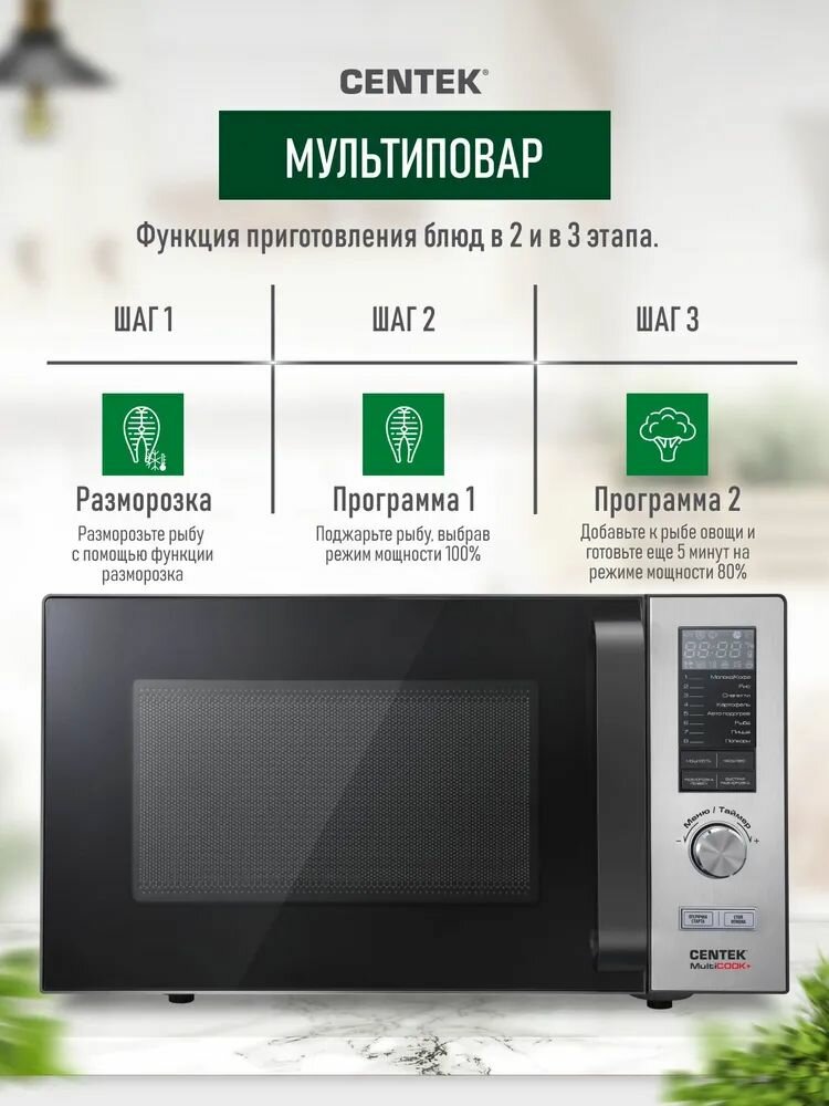 10 цен на Микроволновая печь Centek CT-1588 (Сталь) 900W, 25л, 8 программ, Multicook +, быстрая разморозка