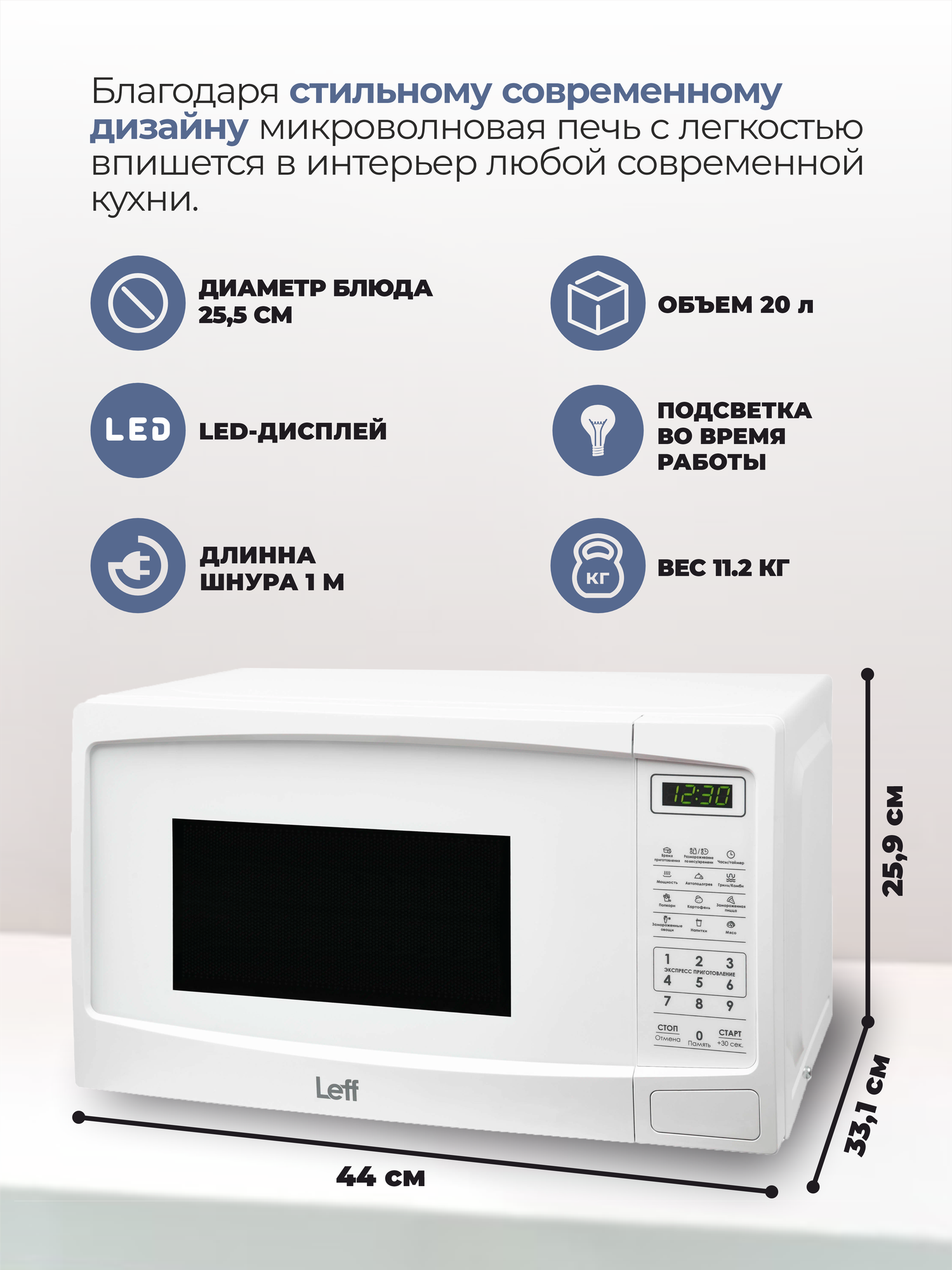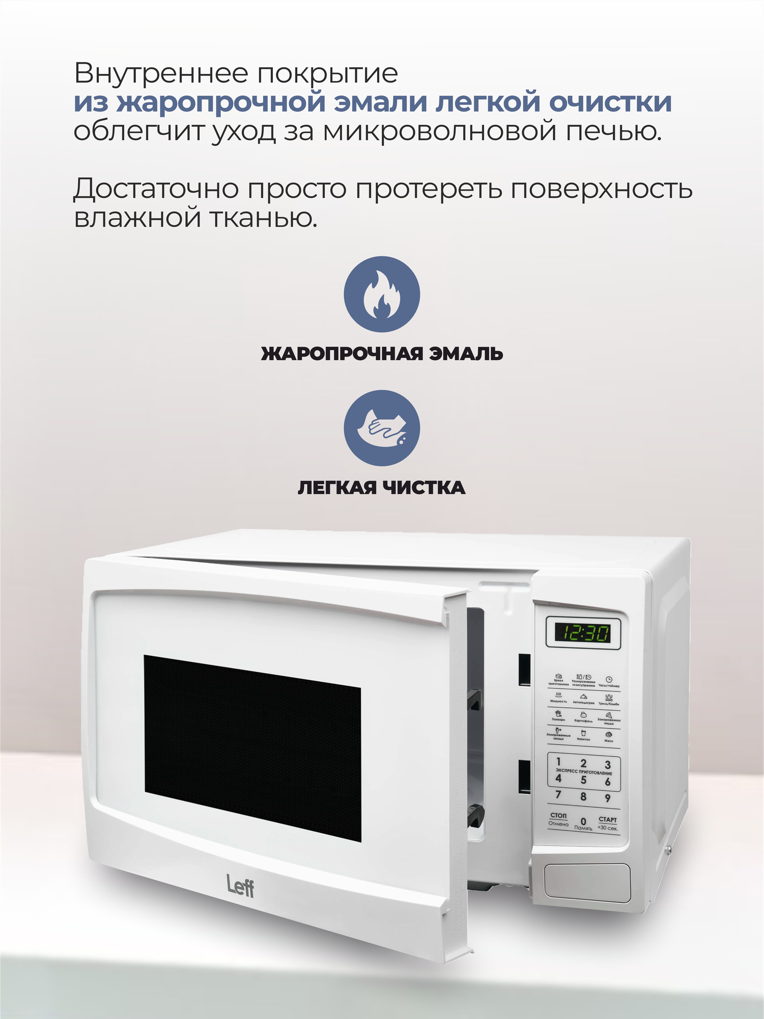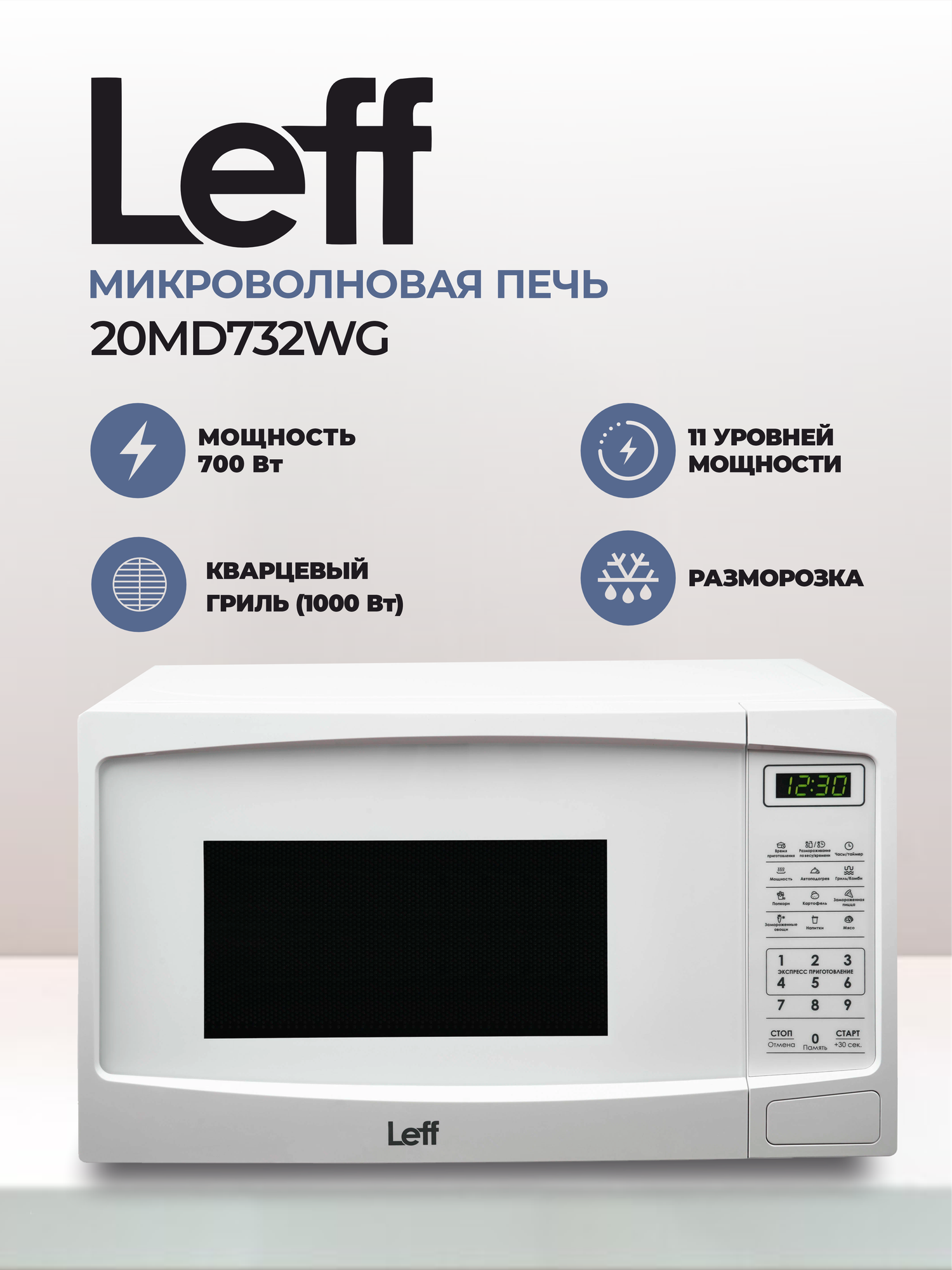 Микроволновая печь Leff 20MD732WG 20л, 700 Вт, гриль, белый информация: