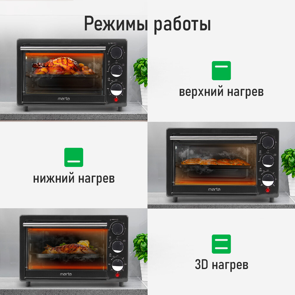 Аэрогриль-духовка MARTA MT-EO4296A, 20л, механический, 3 режима работы, черный жемчуг