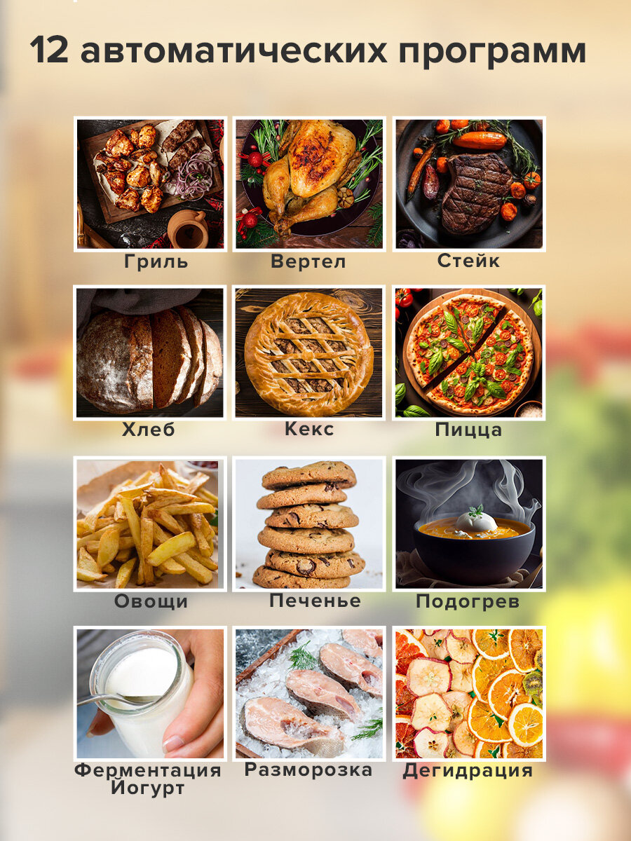 | Режимы | автоматические программы приготовления / верхний гриль / верхний нагрев / верхний+нижний нагрев / конвекция / нижний гриль / нижний нагрев / размораживание |