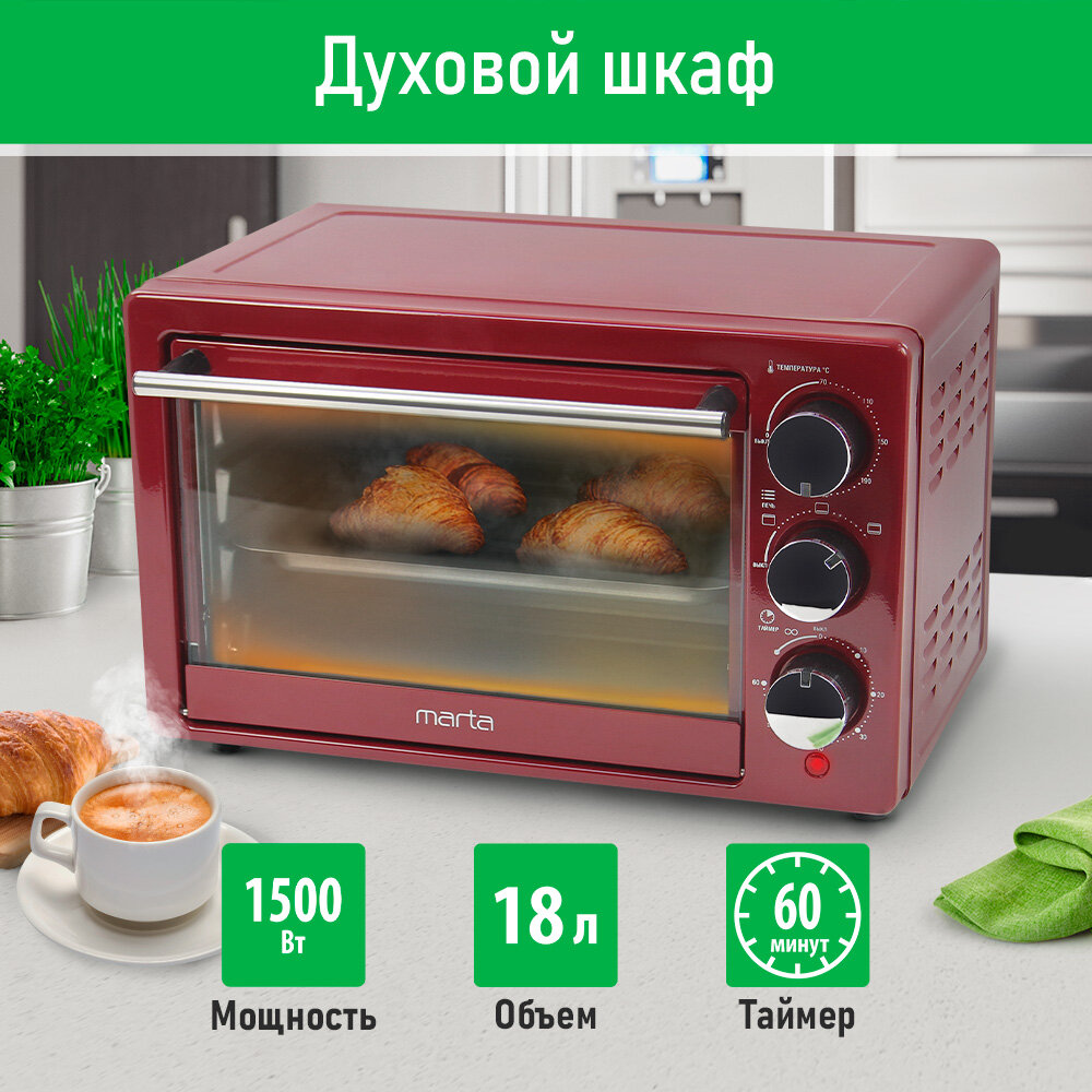 Мини-печь MARTA MT-EO4283A (18 литров, гриль) красный рубин информация: