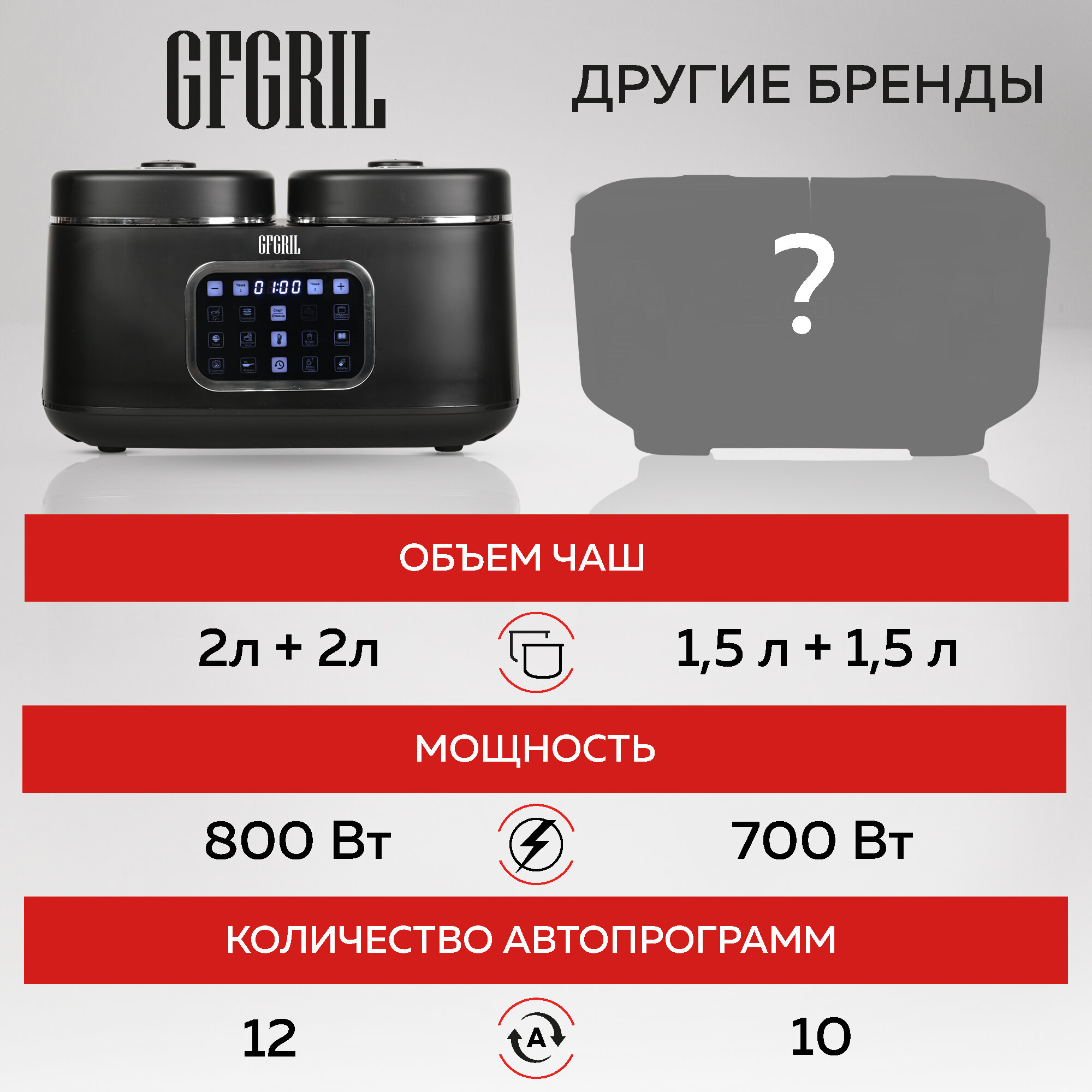 GFGRIL Мультиварка 3 в 1 с двумя чашами GFM-210: мультиварка, пароварка, йогуртница информация: