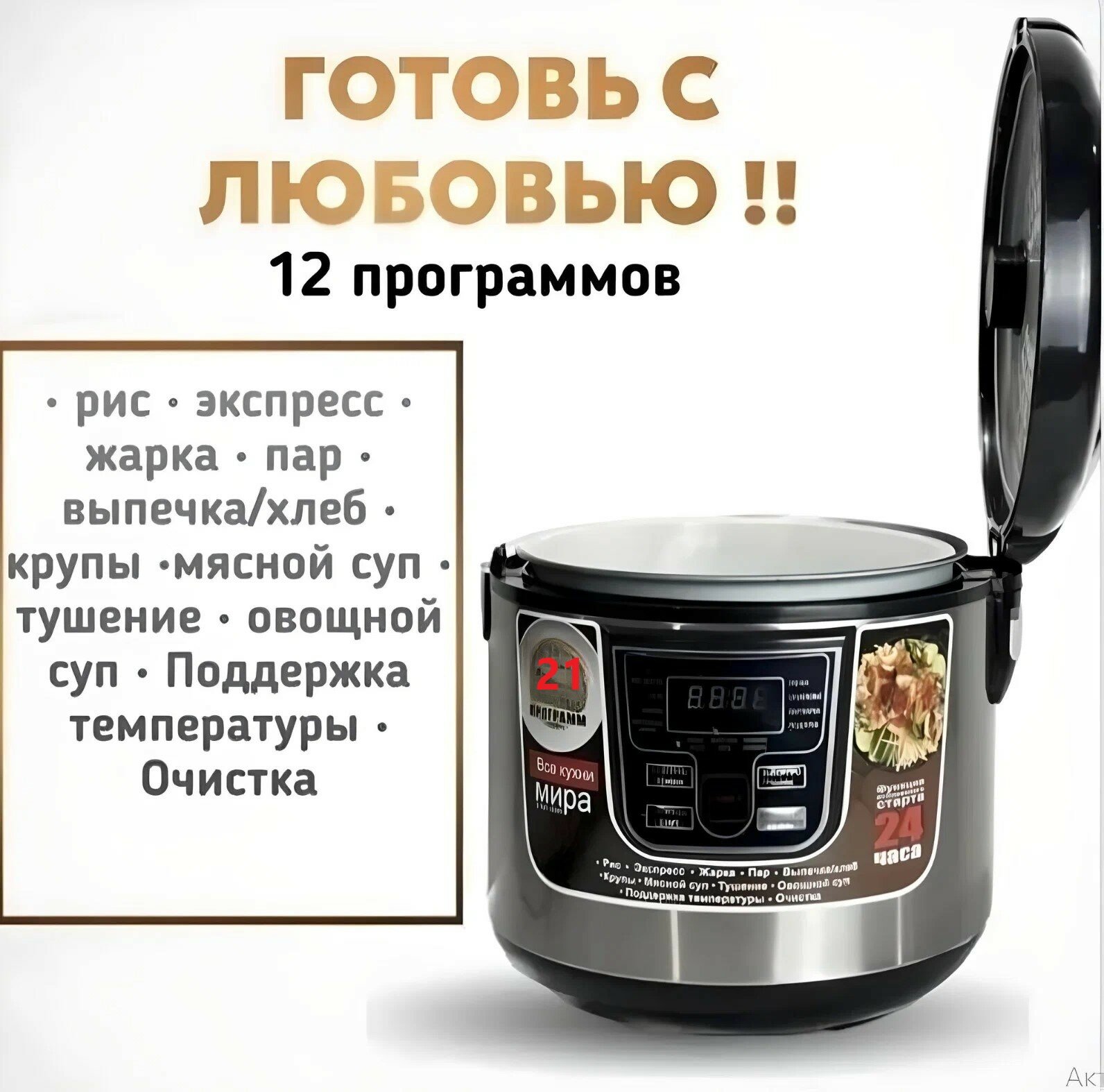 Мультиварка PRO-167,керамическое покрытие, 5л., 900Вт, поддержание температуры, отложенный старт, электронное управление, таймер 24 часа, 21 программа информация:
